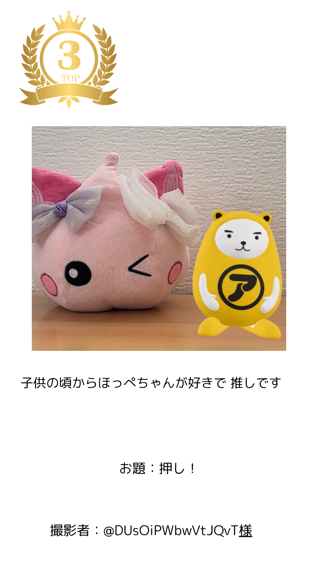 賞品 : 入賞作品3名様に「べあ~君からのありがとう賞」としてプレゼントを進呈いたします。