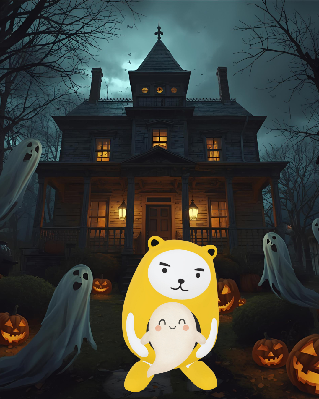 スマホARで現れる当社キャラクター「べあ〜君」とハロウインの写真を募集