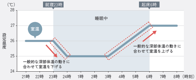 ※11:本製品は室温を管理するシステムであり、居住者の深部体温に働きかけるものではありません。この製品は自動的に眠りや体温を検知して室温を調整するわけではありません。外気条件により設定温度にならないことがあります。