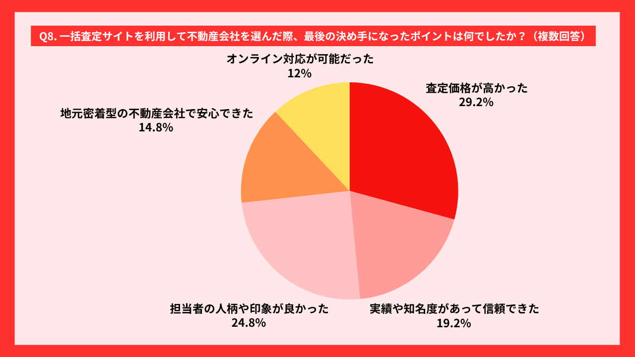 【Q8】一括査定サイトを利用して不動産会社を選んだ際、最後の決め手になったポイントは何でしたか?