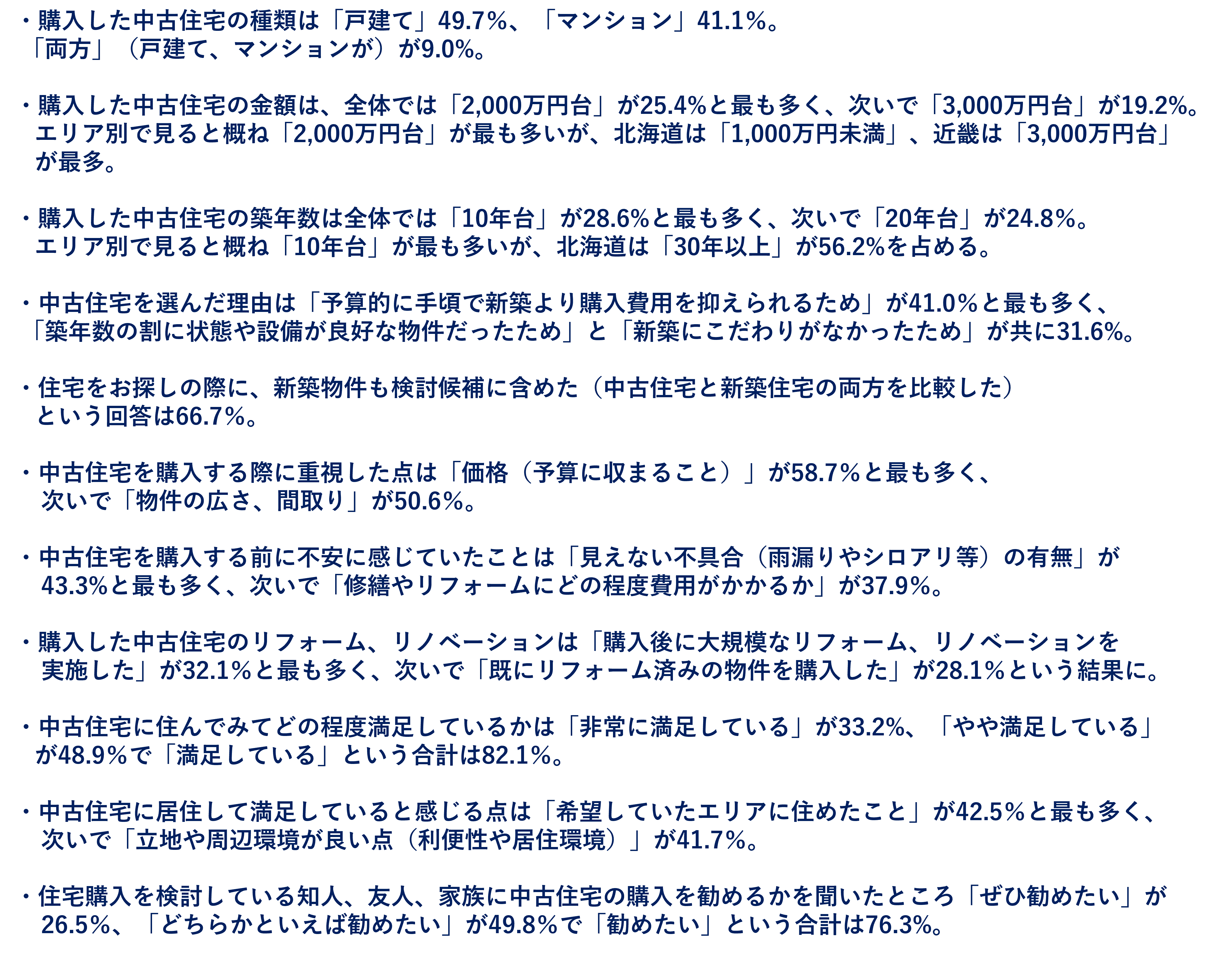 ・調査対象:過去に中古住宅(戸建て、マンション、両方)を購入した経験があると回答した