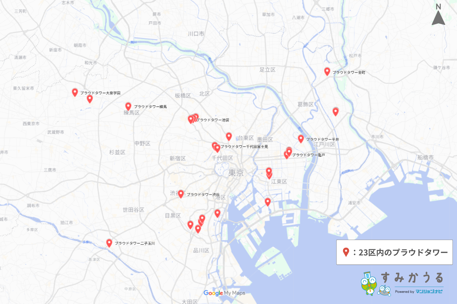 画像2:23区内のプラウドタワー所在(マンションナビ調べ)