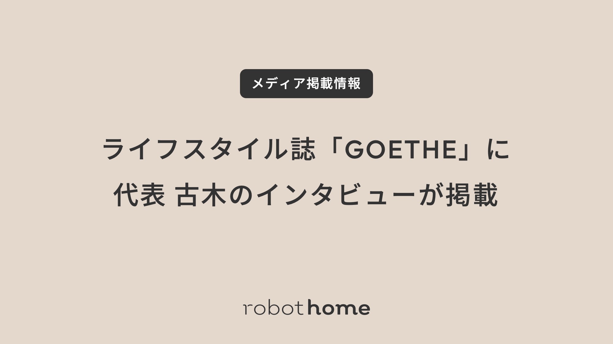 株式会社robot home(本社:東京都中央区 / 代表取締役CEO:古木 大咲 / 証券コード:1435 以下当社)は、2025年10月24日発売の「GOETHE」12月号に、代表取締役CEO古木のインタビューが掲載されましたことをお知らせいたします。