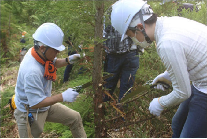 公益財団法人東京都農林水産振興財団が東京都とともに進める「企業の森」の趣旨に賛同・協定を締結し、東京都青梅市の1.9haの森林を「エコロじいの森」と命名して、森林整備活動を実施してきました。2017年には、当グループの社員や家族とともに約300本の苗木を植え、以降も、年に数回の森林整備・育成活動を継続して行っています。豊かな自然の中での経験と学びを通して、生物多様性に関するコミュニケーションの機会を創出するとともに、当グループの社員や家族のリテラシー向上に取り組んでいます。