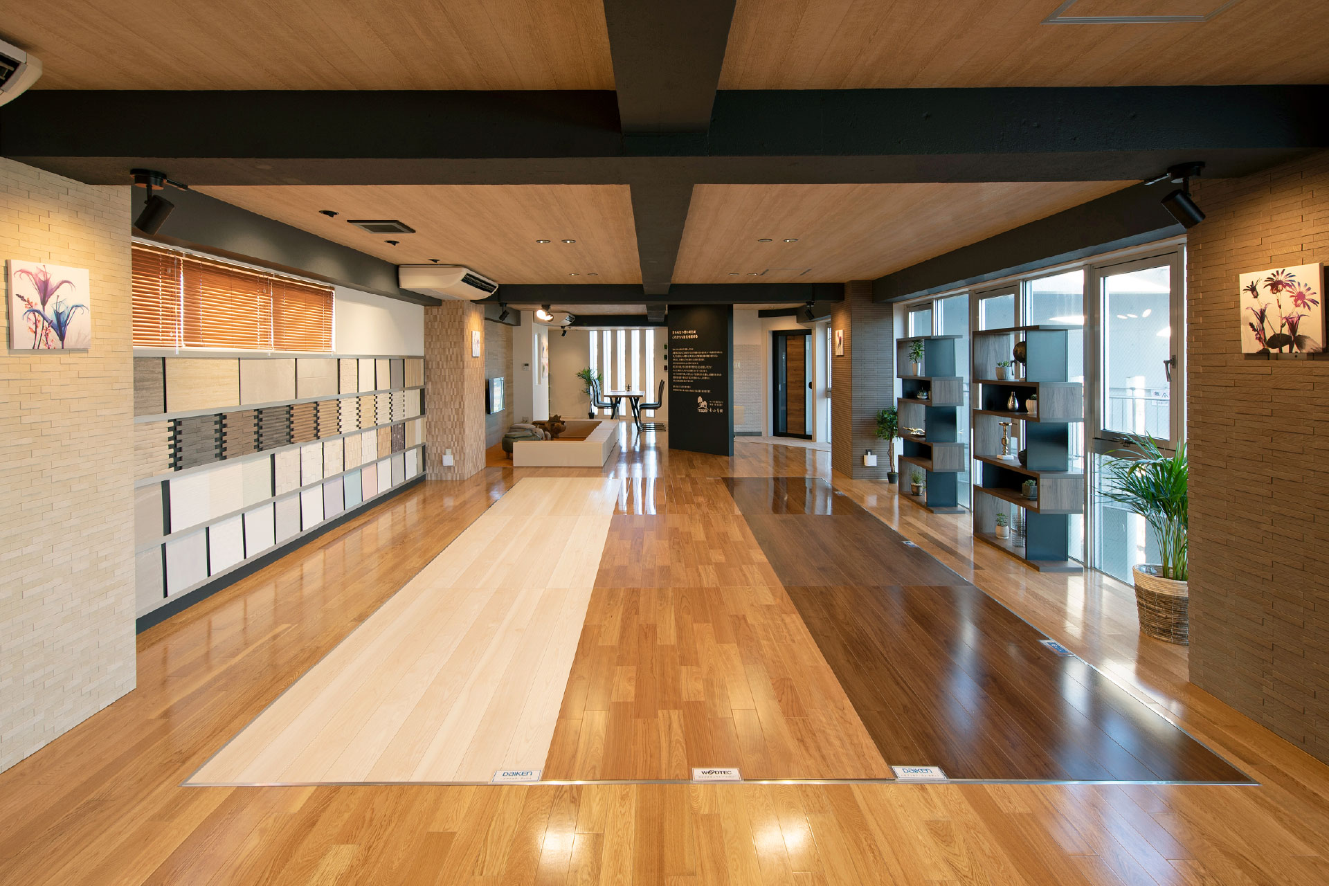 当社のショールームは愛知県でも有数の大型ショールームとして、豊富な展示をご用意しております。実際のフロアコーティングの仕上がりや質感を「見て、触れて」しっかりとご確認いただけます。