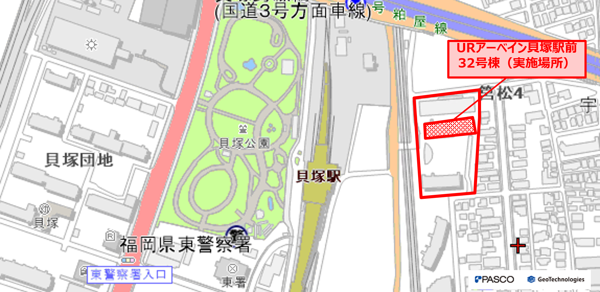 場 所 ① URアーベイン貝塚駅前32号棟(福岡市東区筥松4-8-32)