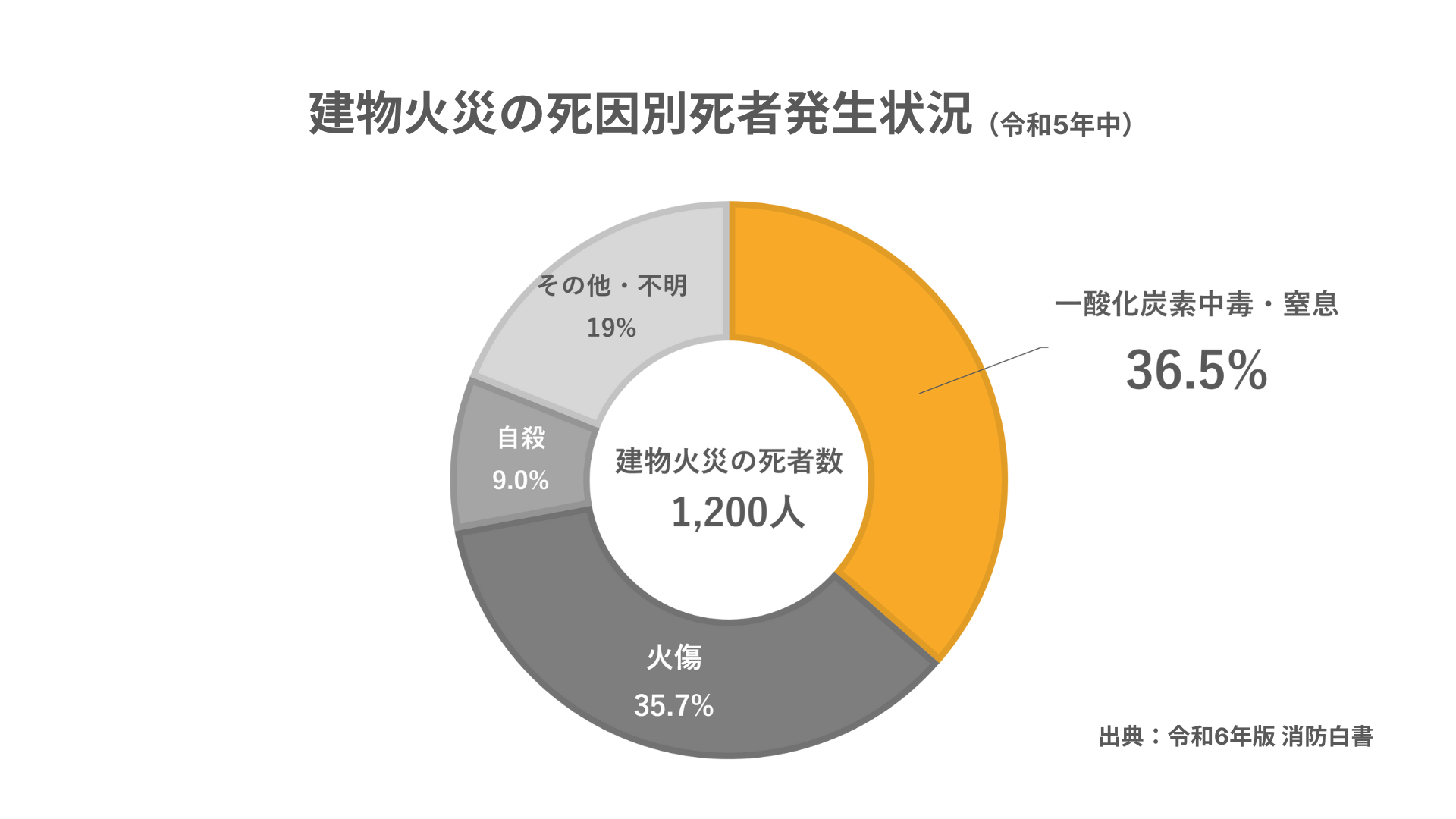 建物火災で一番多い死因は「一酸化炭素中毒・窒息」で約4割