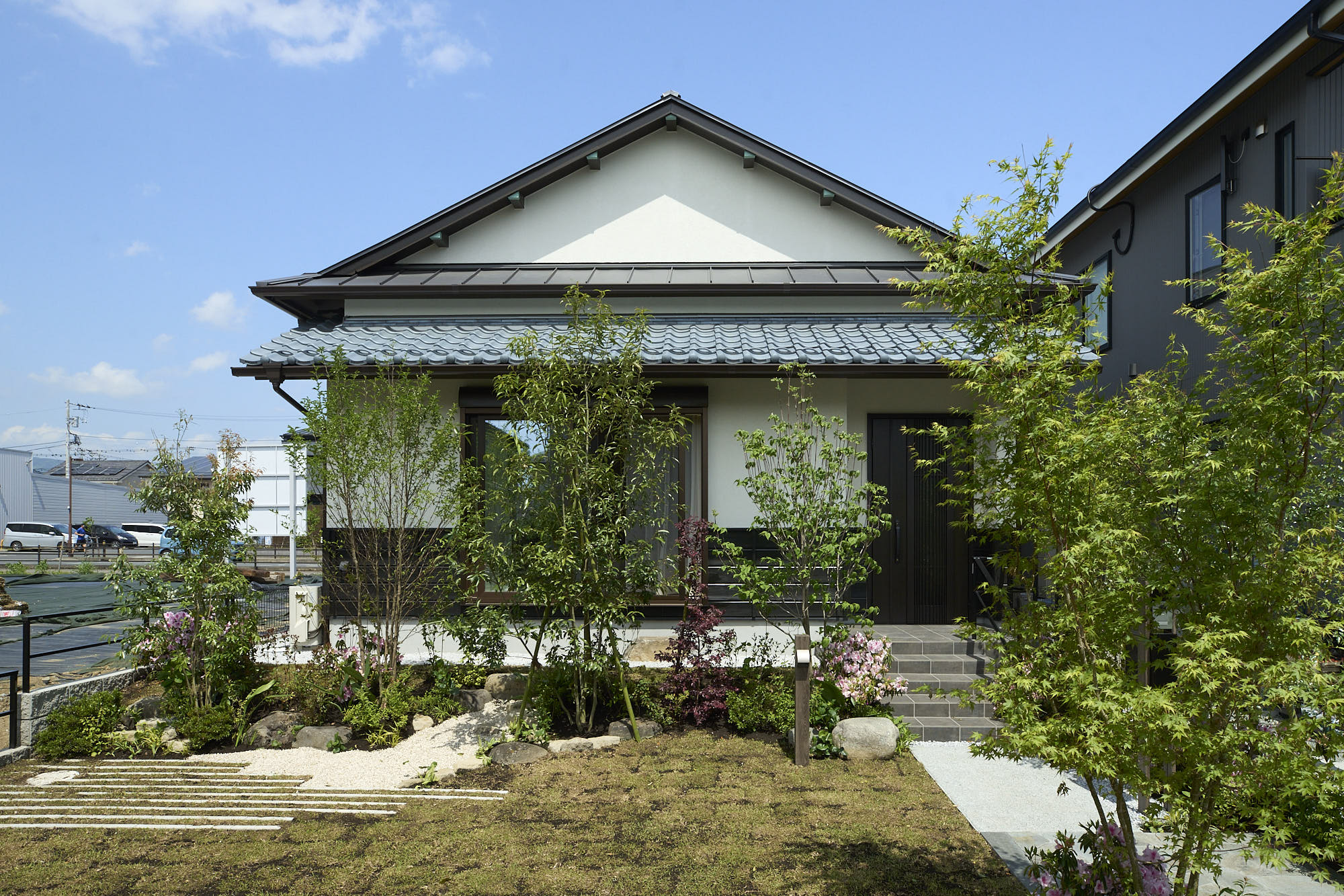 季節の移ろいを楽しむ庭と新潟県産の安田瓦を使ったファサード
