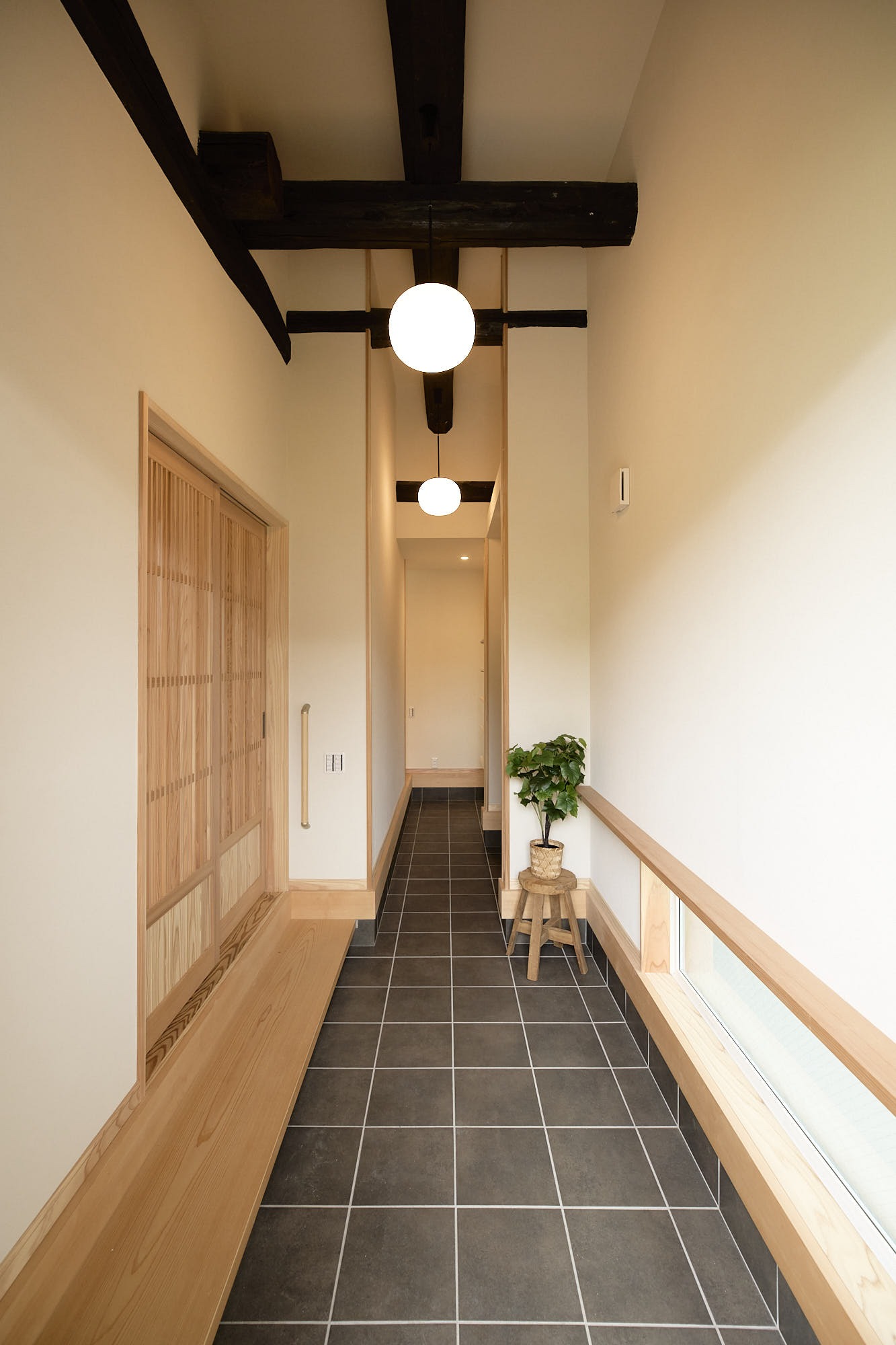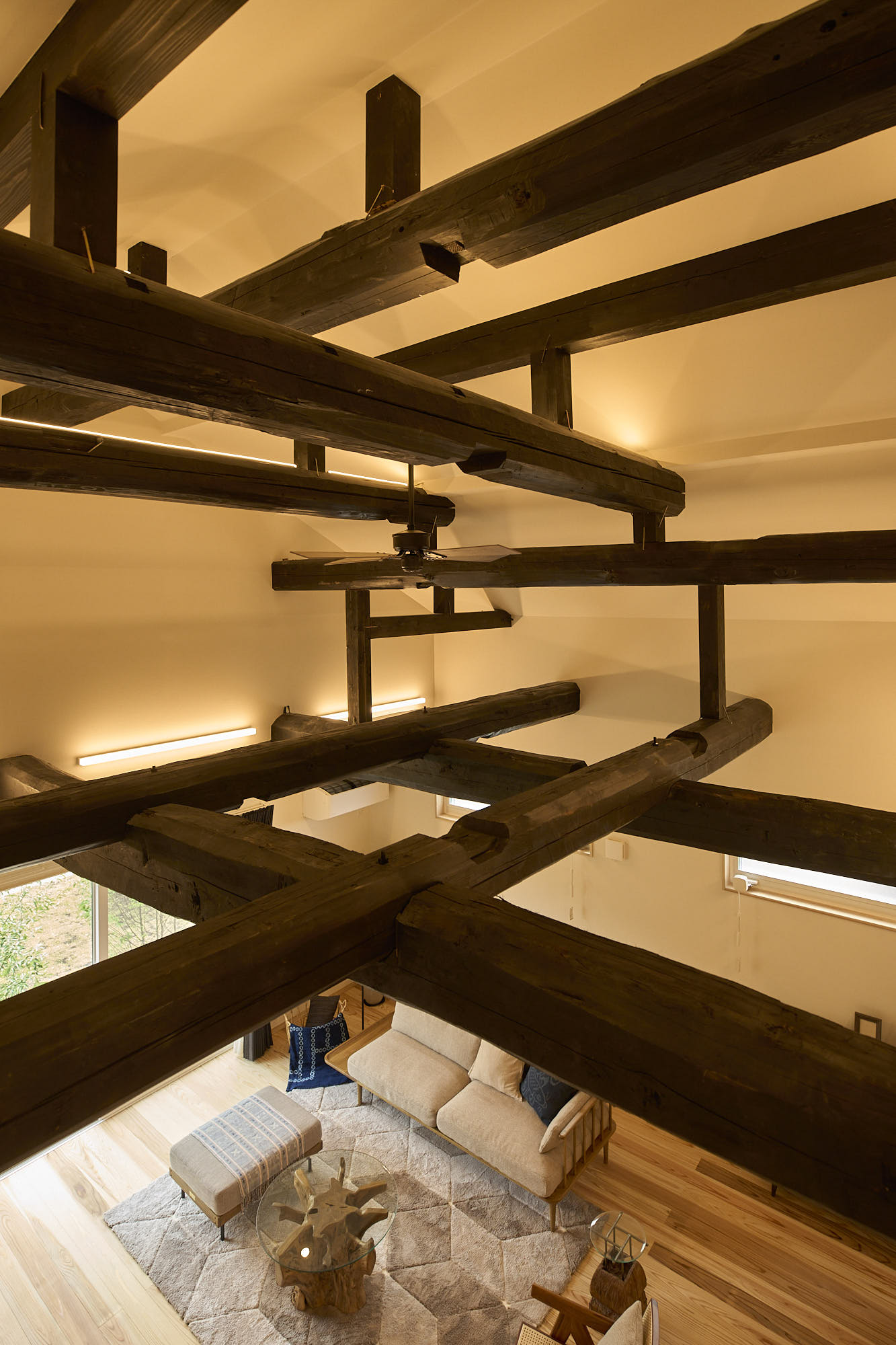 本作品は、雪深い新潟県阿賀町で約160年にわたり住まいを支えてきた古材を、リビングの大梁に用いており、耐震、断熱・省エネ性能に優れた、常設の平屋モデルハウスです。