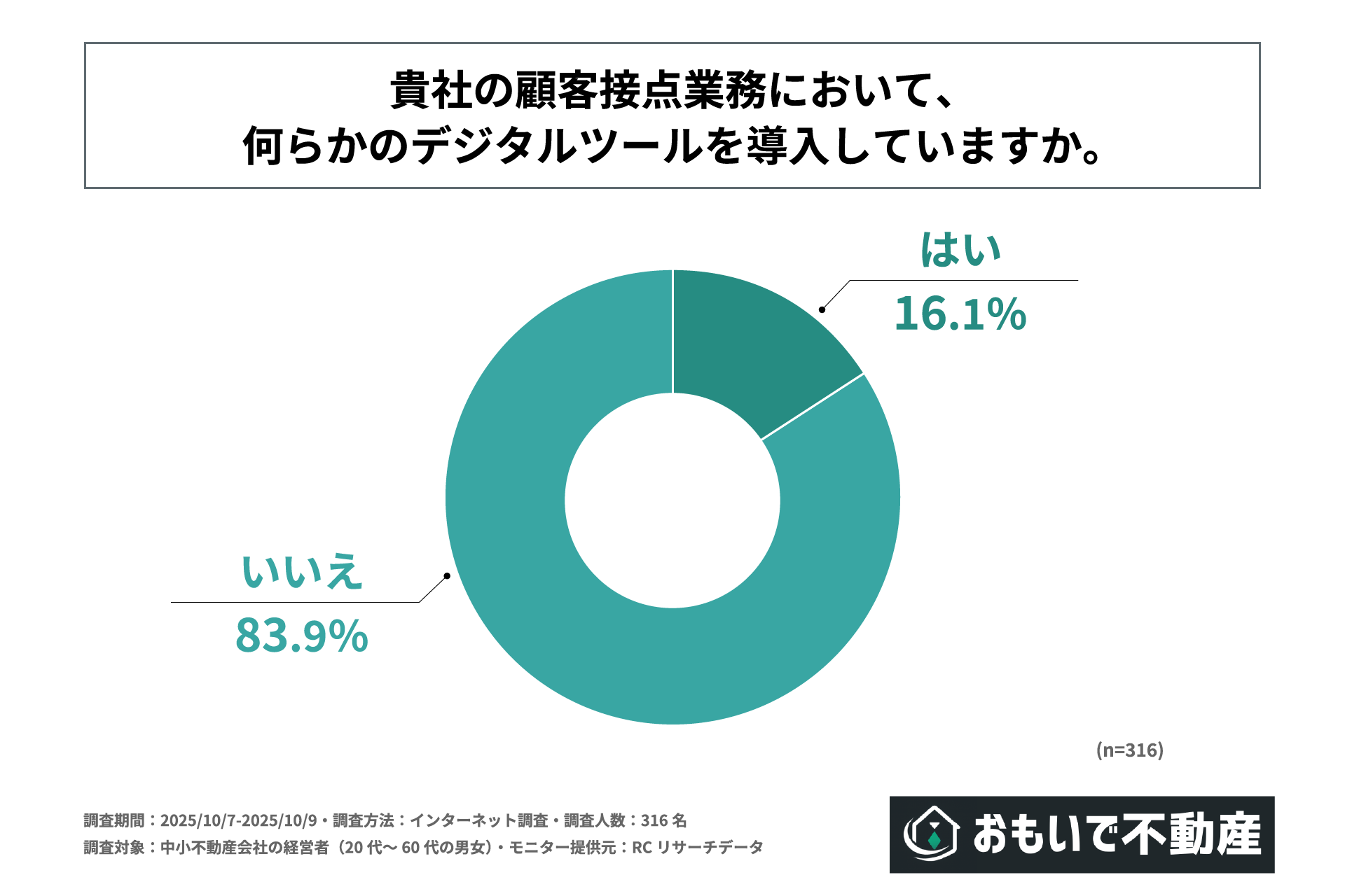 中小不動産会社の8割強が、顧客接点業務においてデジタルツールを導入していない