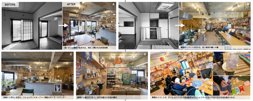 このたび2つの取り組みをご評価いただき、とても光栄に思います。リフォームを通じて目指したのは、建物の中に「人が集まるひらかれた場所」をつくること。そして、その場所から新しい関係やつながりが生まれていくことでした。オーナー様が大切にされている、「住民の皆さんが豊かな暮らしを実現でき、また地域に貢献できる建物にしたい」という想いに共感し、その想いをカタチにすることで、建物にもう一度、まちと人をつなぐ力を取り戻していけたらと考えています。この取り組みを支えてくださった皆さまに、心より感謝申し上げます。
