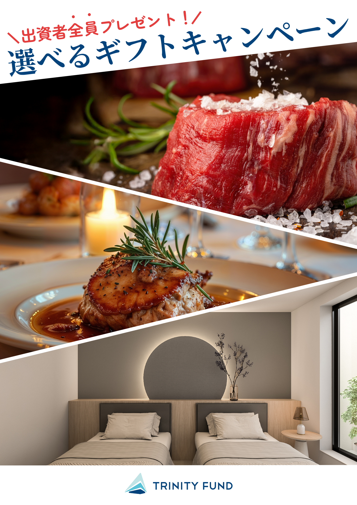 また、第4号ファンド限定で、出資者様全員を対象に、選べるギフトプレゼントキャンペーンを実施いたします!