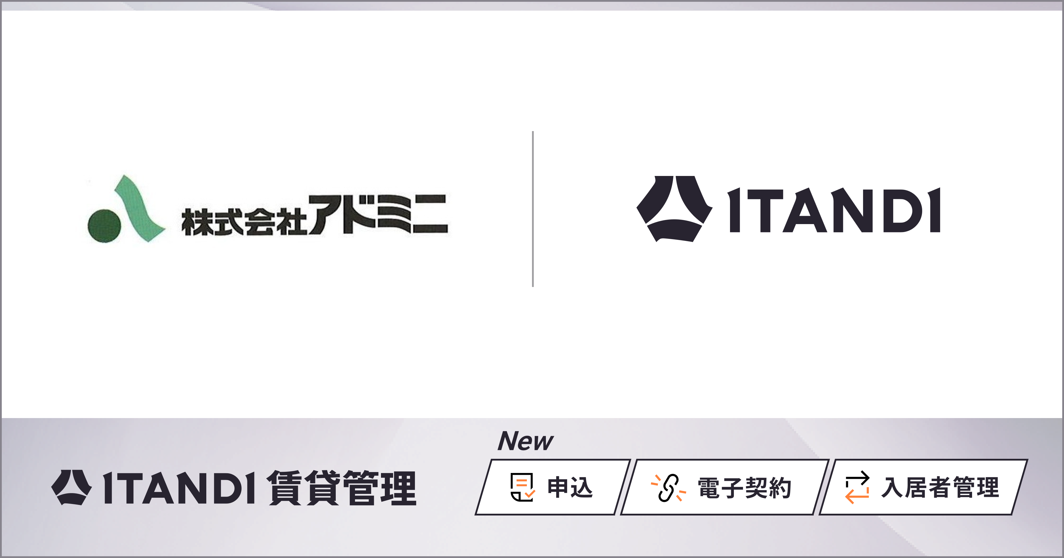 テクノロジーで不動産取引をなめらかにするイタンジ株式会社(以下「当社」)は、2025年11月4日より、近畿地区で6,000戸以上の賃貸物件を管理する株式会社アドミニ(以下「アドミニ」)が、賃貸管理の業務支援サービス「ITANDI 賃貸管理」を導入し、入居申込受付、賃貸借契約、入居者管理の電子化を開始したことをお知らせします。