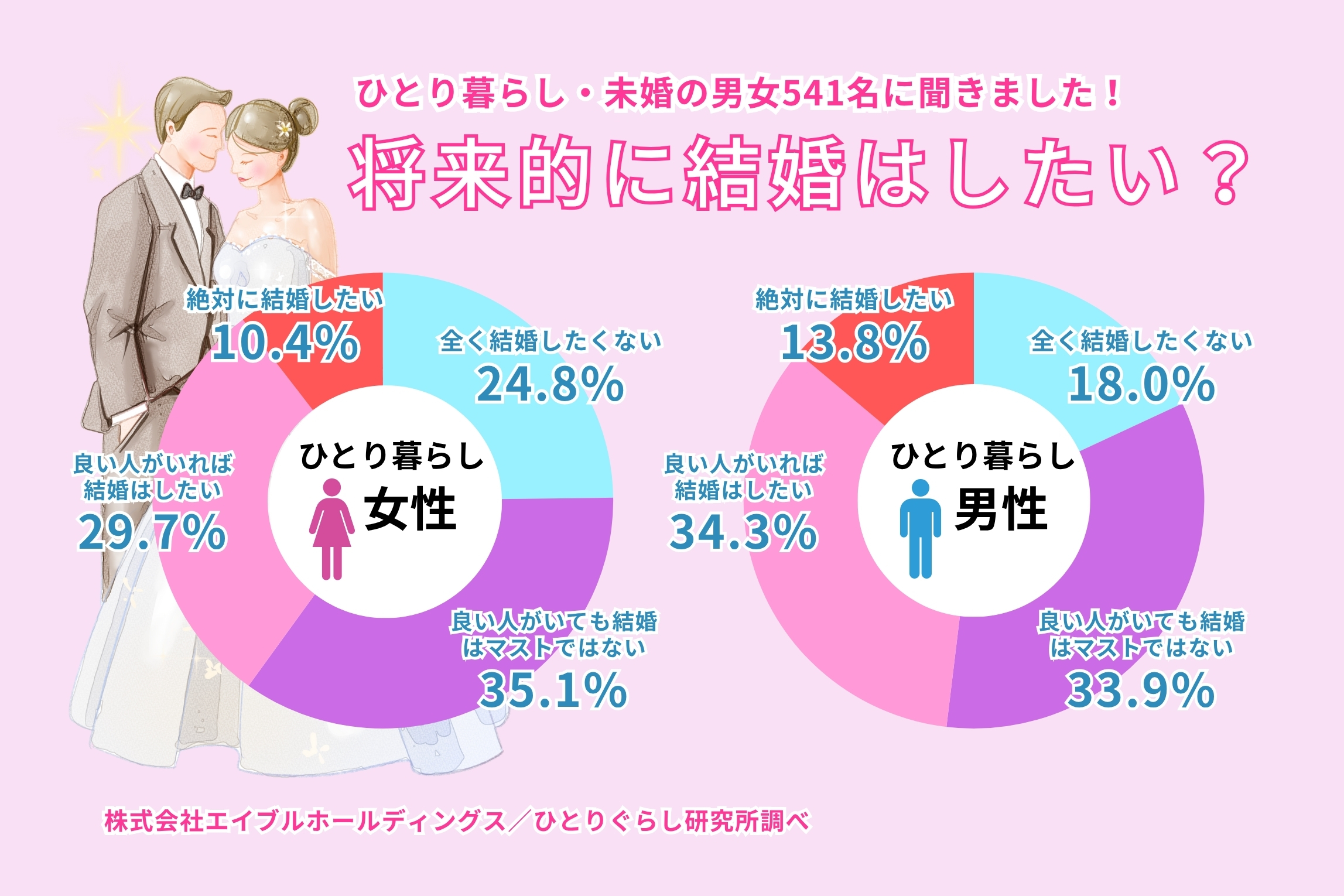 株式会社エイブルホールディングス(本社:東京都港区、以下エイブルホールディングス)が運営する、ひとり暮らし応援ブランド「ひとぐら」が手掛ける、ひとり暮らしを多角的に研究する専門ラボ「ひとりぐらし研究所」は、「ひとり暮らしの結婚意識調査2025」の結果を報告いたします。