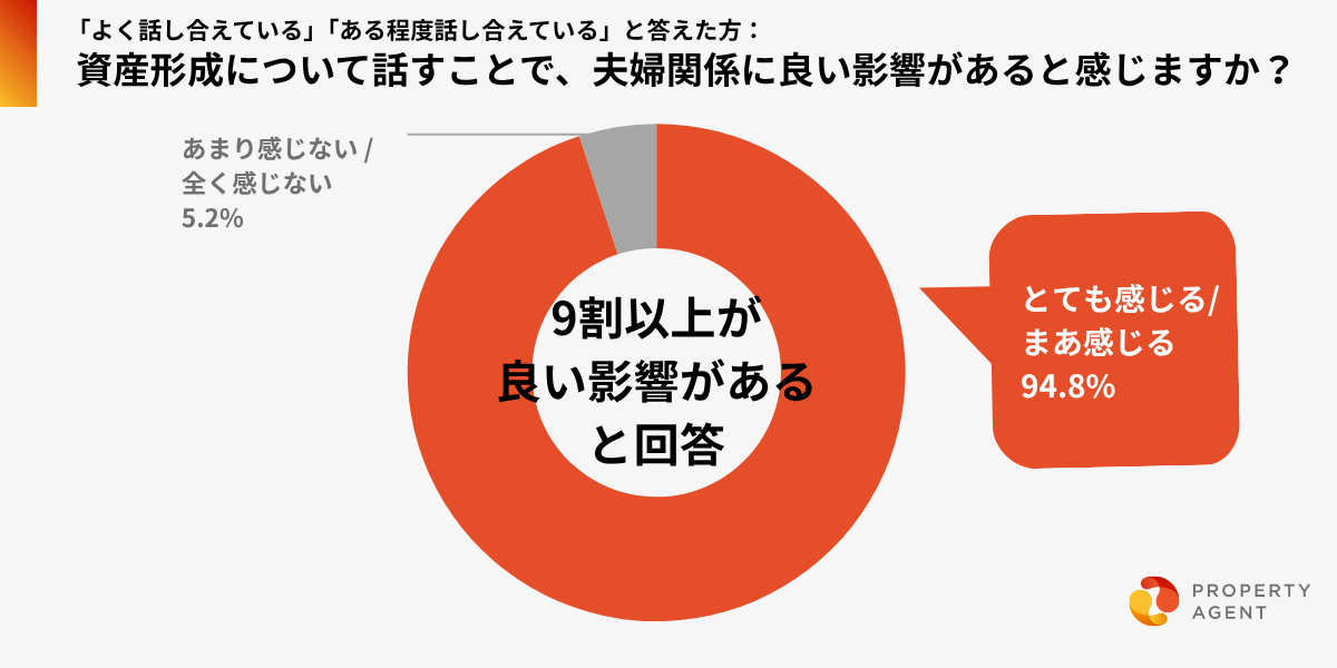 一方で、話し合えている夫婦の約95%(94.8%)が「夫婦関係に良い影響を感じる」と回答