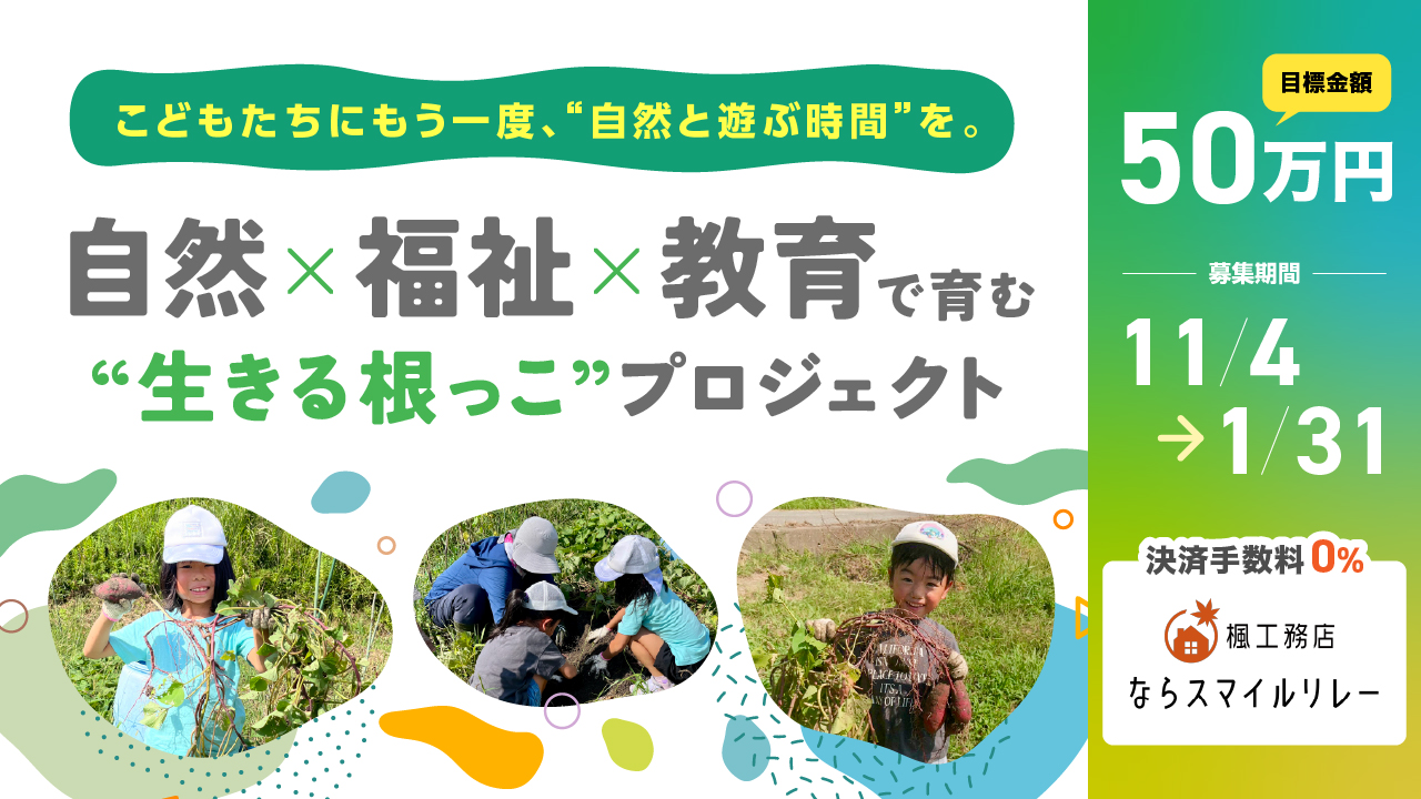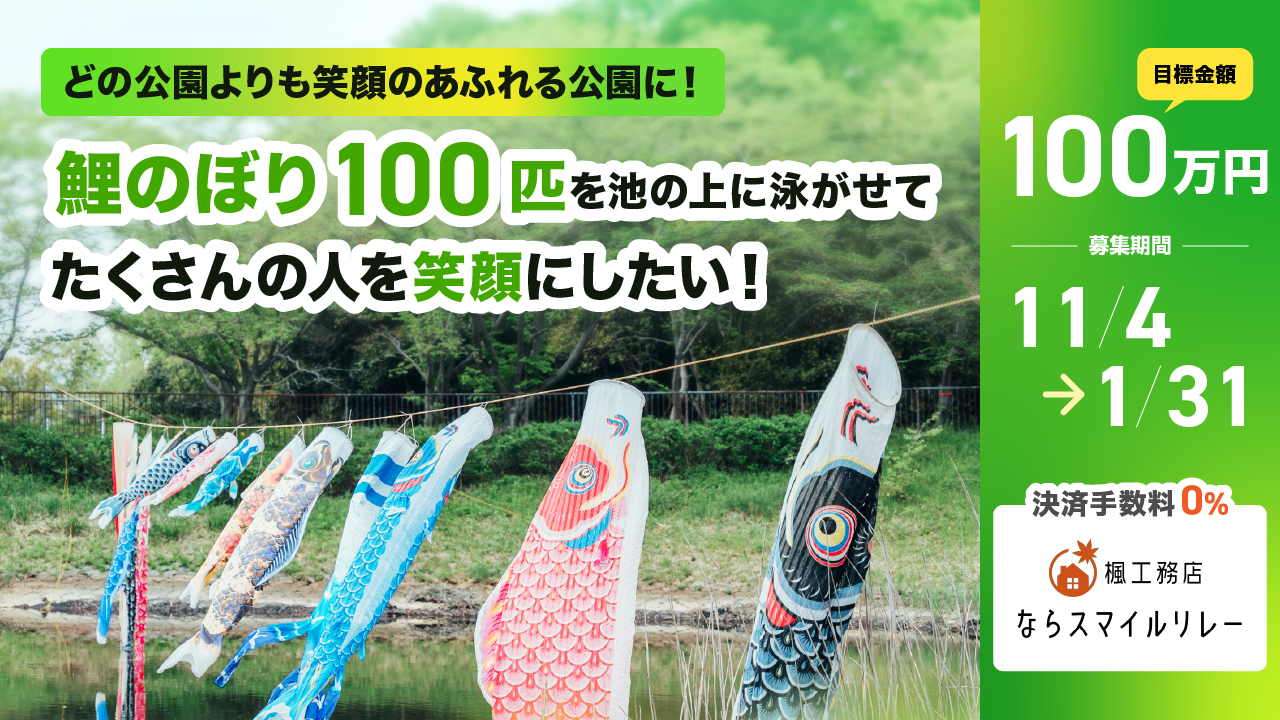 奈良で活動するNPOの想いや挑戦を“笑顔のリレー”としてつなぎ、地域をより良くする取り組みを広げていくことを目的としたクラウドファンディングです。本プログラムでは、寄付金の決済手数料を楓工務店が全額負担することで、寄付者の想いを100%NPOに届けることができます。地域を支える活動を応援したい方々が、安心して寄付に参加できる仕組みを整えることで、「人と地域を笑顔でつなぐリレー」を目指します。