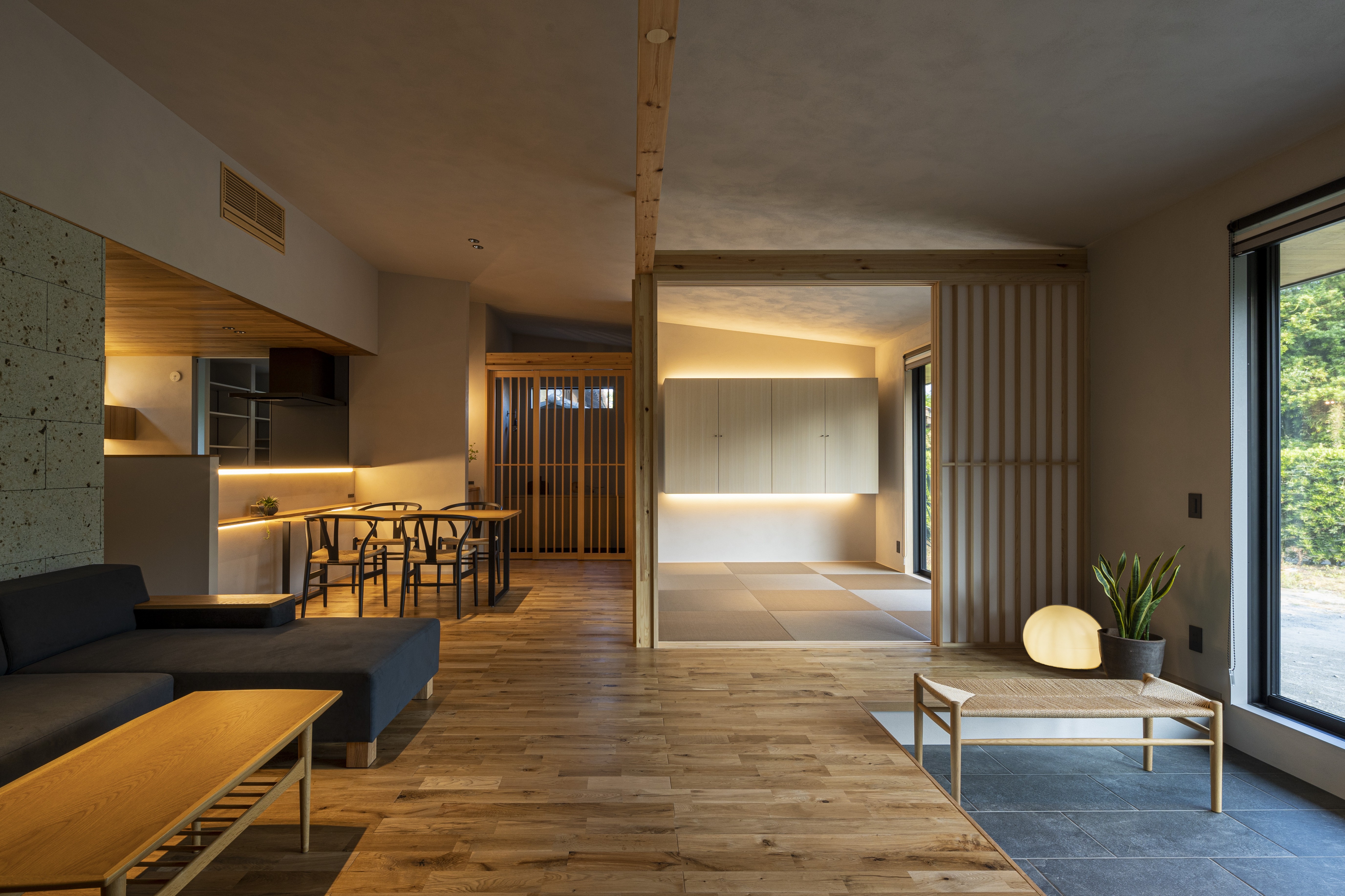 緑風と歩む、山武の家:和テイスト×北欧が印象的な約30坪の平屋。将来を考えてバリアフリーな設計にもしています。