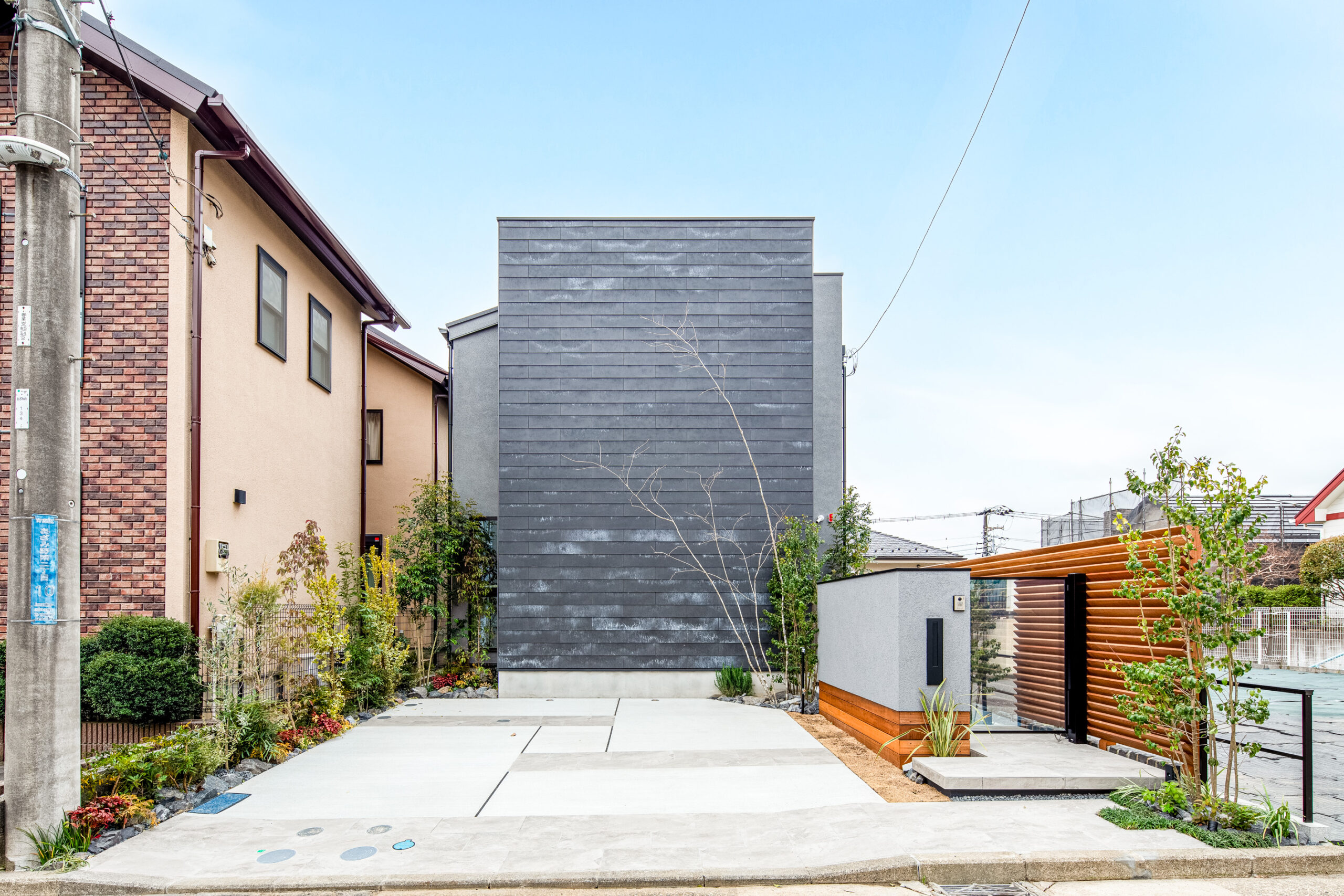 本物件は、高級住宅街の趣ある街並みにふさわしい、外観・外構の細部にまでこだわり抜いた分譲住宅です。建物の色合いと門扉のガラス、外構の植栽、ウッドフェンスが調和し、都市的な無機質さと自然な温かみが融合している点が高く評価され、この度の受賞に至りました。