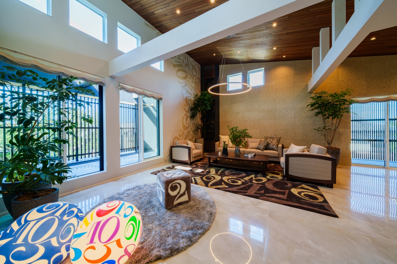 フランク ミュラーを象徴するビザン数字とトノウ カーベックスの曲線を随所にあしらい、外観からインテリアまでブランドの美学を体現した世界で唯一の戸建住宅です。