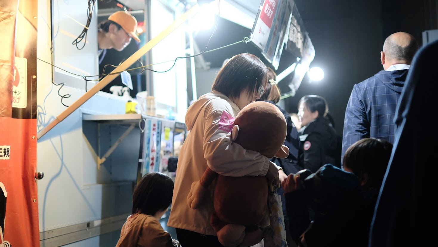 屋外エリアには、地元藤沢を盛り上げる「藤沢市キッチン協議会」のキッチンカーが大集合。豚丼、ホルモン焼き、焼きそば、ピザ、から揚げ、お好み焼きなど、多彩なグルメがイベントの“食”を彩り、ご家族で美味しい料理を囲む姿が多く見られました。
