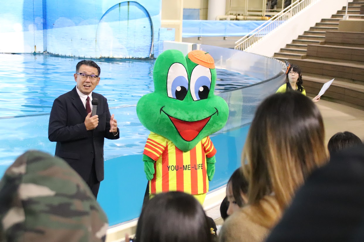 湘南エリアを中心に建築・不動産事業を展開し、設立49年を迎えるユーミーらいふグループ(本社:神奈川県藤沢市、代表取締役:木村光貴)は、去る2025年10月25日(土)、新江ノ島水族館を全館貸し切り、オーナー様の皆様へ日頃の感謝をお伝えする「秋の大感謝祭2025~ハロウィンナイト」を開催いたしました。当日はあいにくの雨模様となりましたが、お足元の悪い中、1,102名のお客様にご来場いただきました。新江ノ島水族館の「ハロウィン仕様」初日とも重なり、仮装を楽しむお子様の姿も見られる中、一夜限りの特別なイルカショーや、多くのお子様が笑顔になったジモティー出張所による「ぬいぐるみ譲渡会」、わなげやおみやげくじのミニゲームなどで楽しんでいただく、熱気あふれる一日となりましたことをご報告いたします。