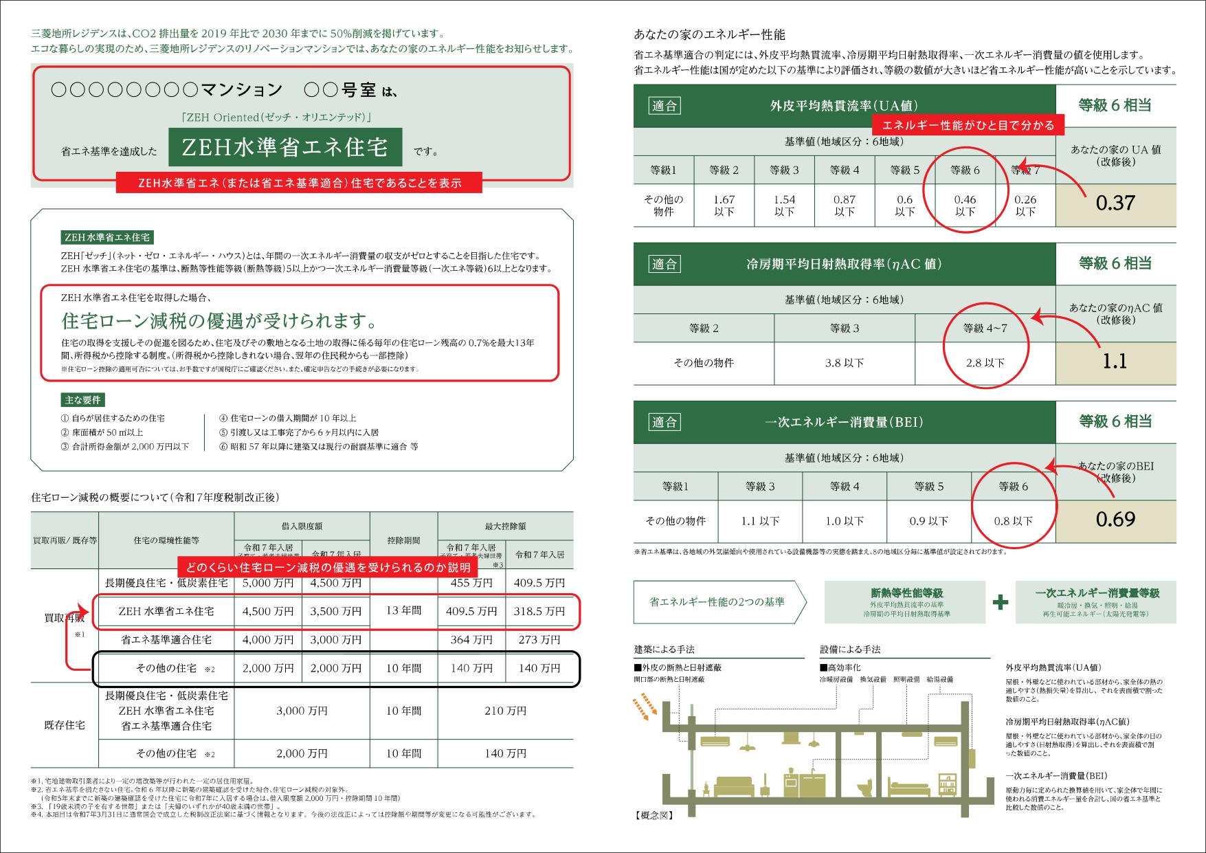 ■エネルギー性能(UA値、ηAC値、BEI)を一目で表示