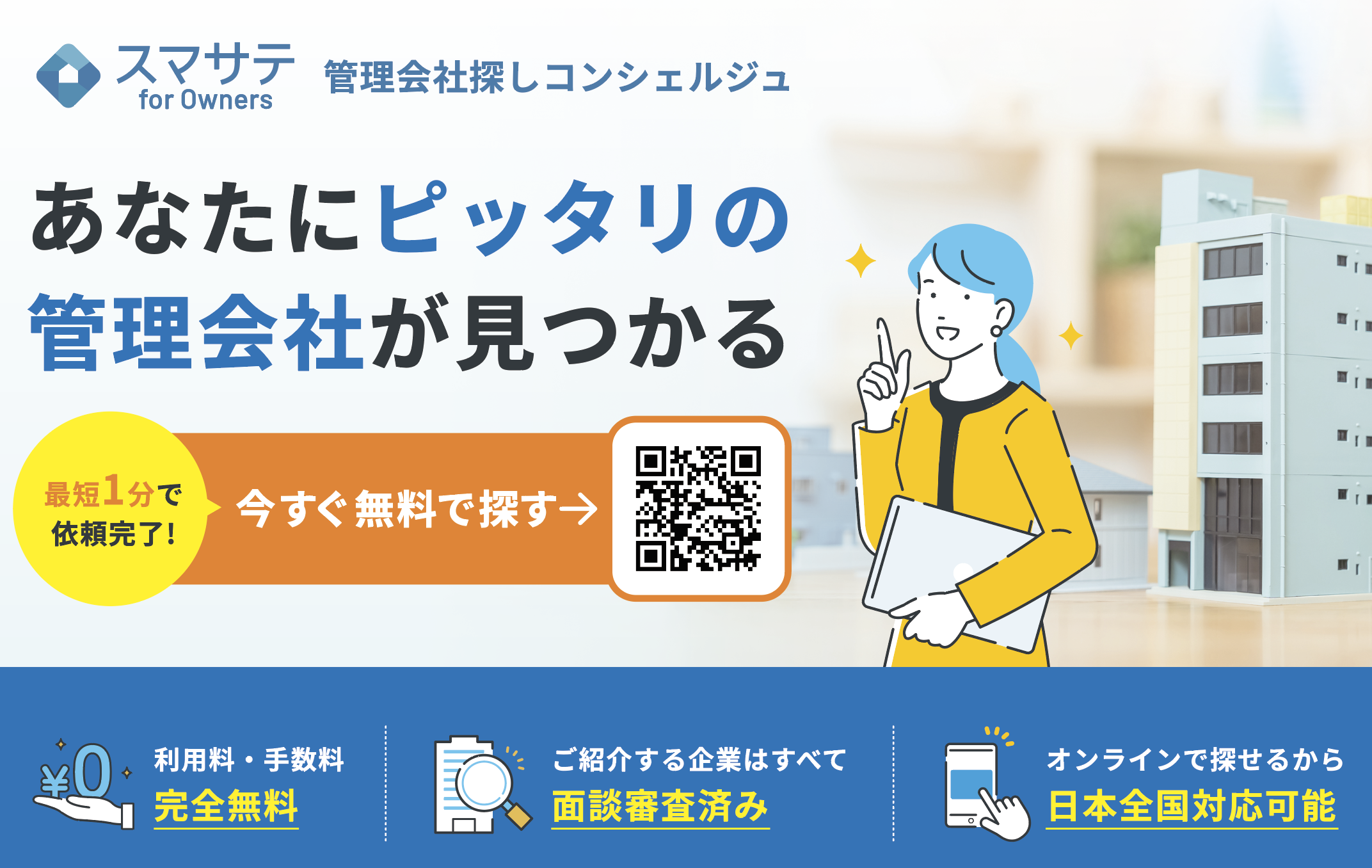 完全無料・全国対応。不動産オーナーの管理会社探しを専任コンシェルジュがお手伝いします。あなたの条件に合わせてぴったりの管理会社をご紹介します。