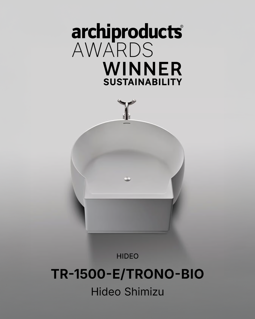 株式会社HIDEO(本社:東京都港区、代表取締役社長:清水秀男)の2025年新作、TR-1500-E/ TRONO-BIO が、Archiproducts Design Awards (アーキプロダクツ・デザインアワード) のバスルーム部門で Sustainability Award 2025 (サステイナビリティアワード) を受賞しました。