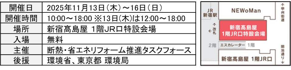 その取り組みの一環として、暮らしの快適性を見つめ直す体験型イベント『おうちの快適展 ~不快は、断熱で快適にできる~』を、2025年11月13日(木)~16日(日)、新宿髙島屋 1階JR口特設会場で開催します。リフォームや断熱関連のニーズが顕在化していない層、特に戸建て所有者およびファミリー層に向けて、断熱リフォームへの気づきと必要性の理解を促進してもらうための、コンテンツを出展します。