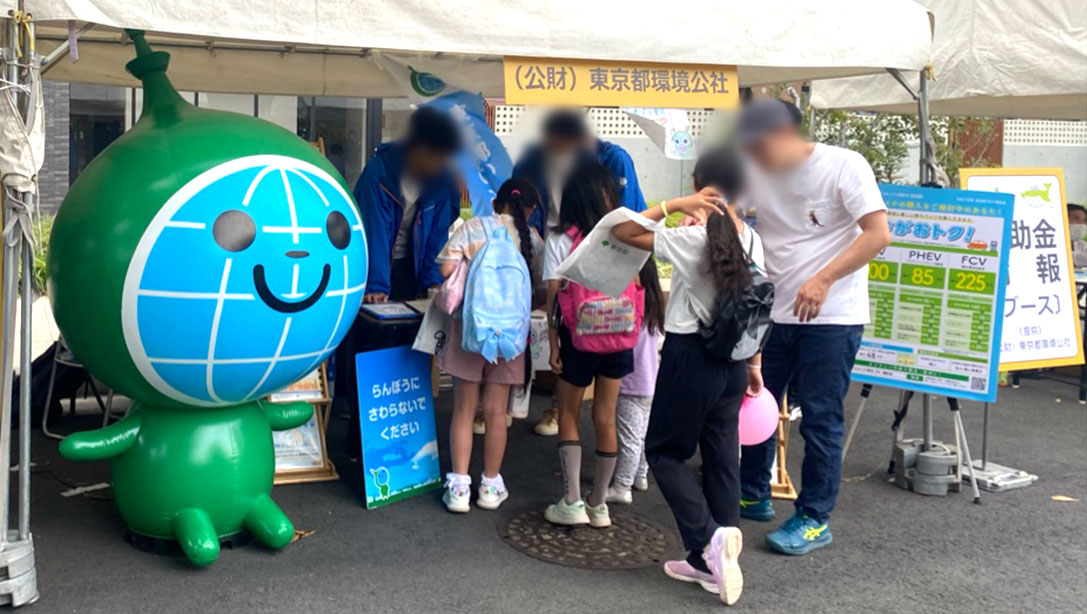 また、協力団体の(公財)東京都環境公社において、都の助成金について説明するブースを設置し、EV購入やEV充電設備設置に関する助成金の情報提供を行いました。
