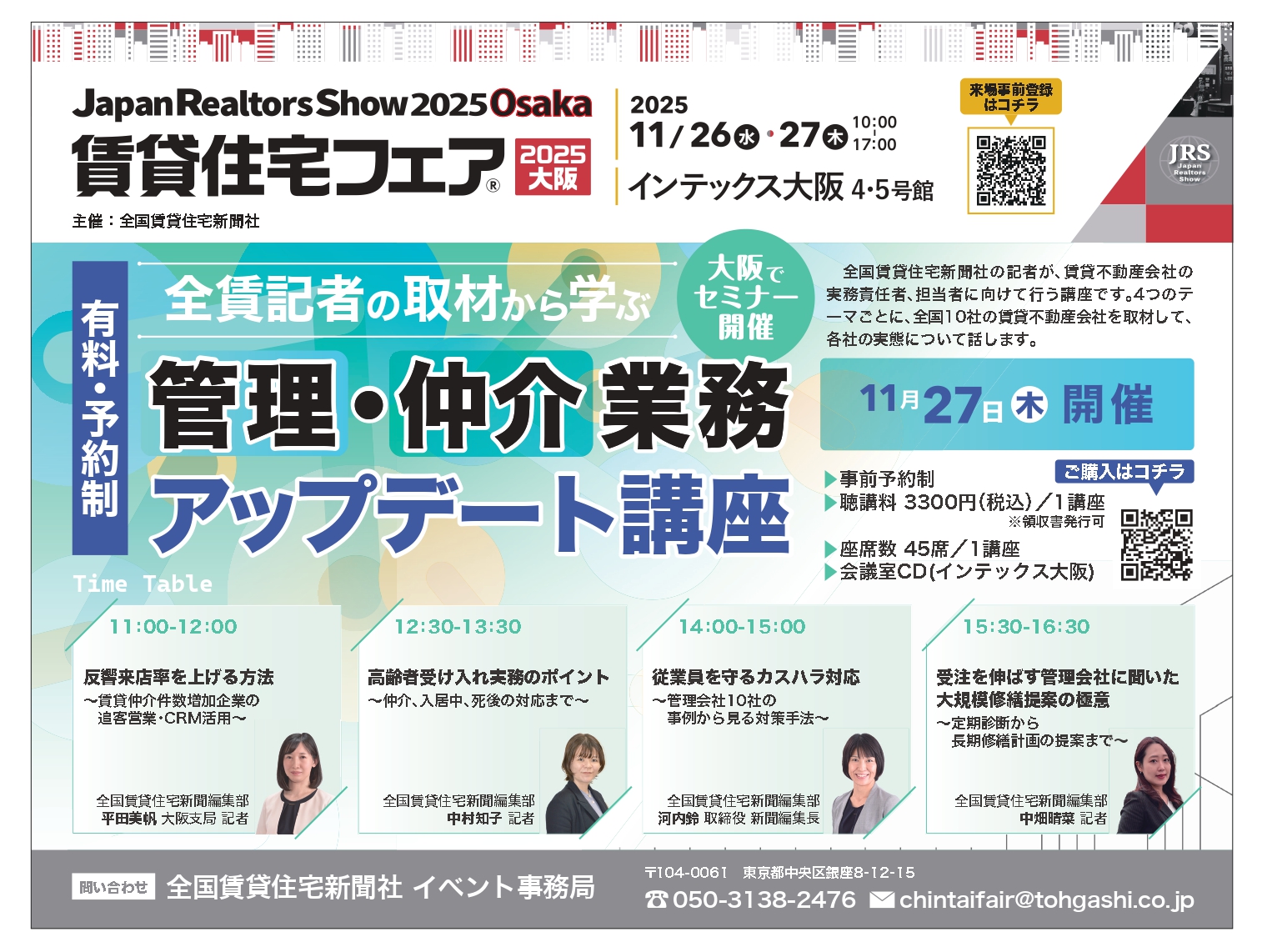開催日 :2025年11月27日(木)(賃貸住宅フェア2025in大阪 2日目主催者企画)