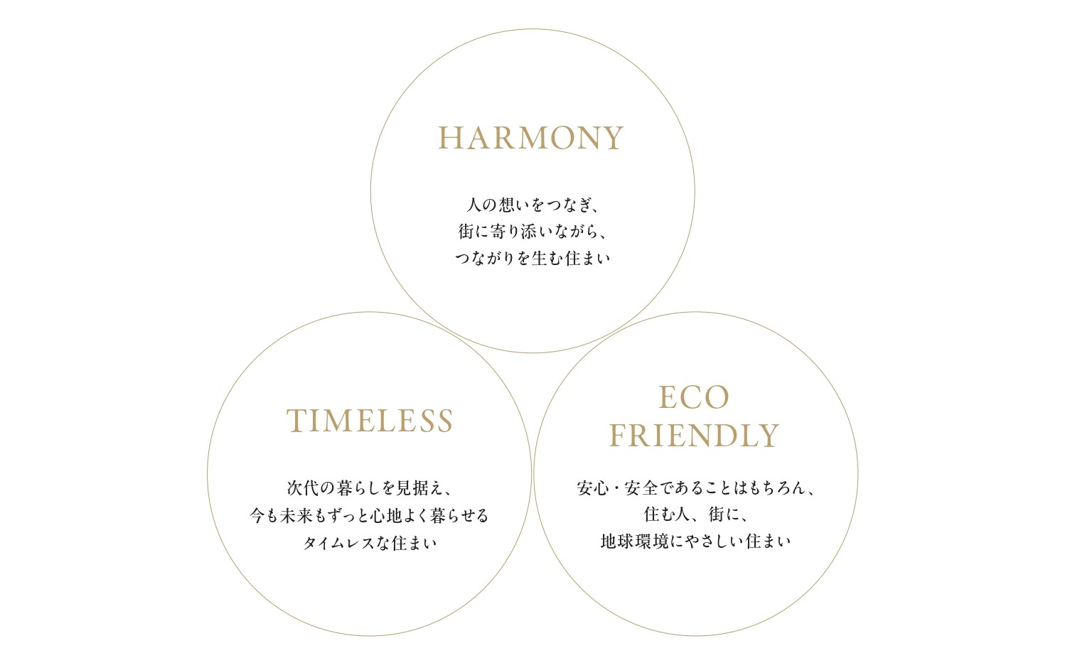 「街と柔らかくつながり、住む人にも、街にも愛される住まい」というコンセプトのもと、良質で末永くお住まいいただける住宅を通じて、住まう方に豊かで快適な暮らしを提供いたします。また、外観や外構、共用部等を街との関係性も意識しながらデザインすることで、街との柔らかなつながりを生み、街からも愛されるマンションを創造してまいります。