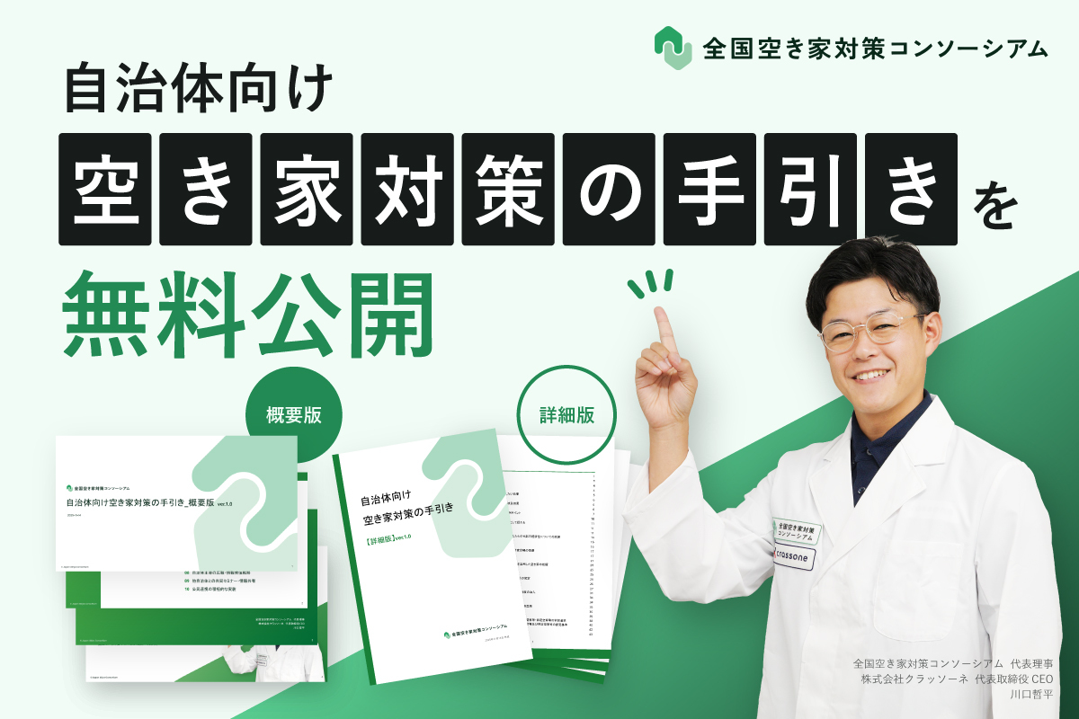産官学連携で空き家問題に取り組む非営利団体「全国空き家対策コンソーシアム(代表理事:株式会社クラッソーネ 代表取締役CEO  川口哲平、以下:本コンソーシアム)」は、空き家対策を行う基礎自治体の職員向けに「自治体向け空き家対策の手引き」を無料公開いたします。自治体が自らの現状を把握し、次に取るべき一手を明確化できるようにすることで、空き家対策業務の強化・促進を目指します。