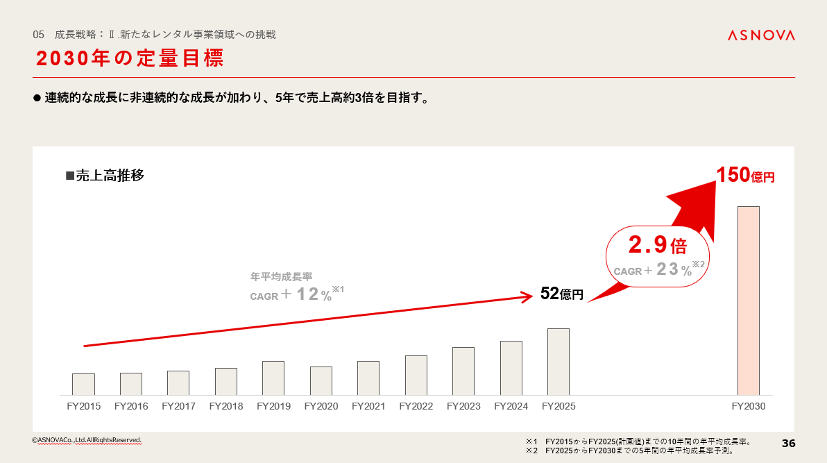 2030年までに売上高を今期の約3倍の150億円を目指します。
