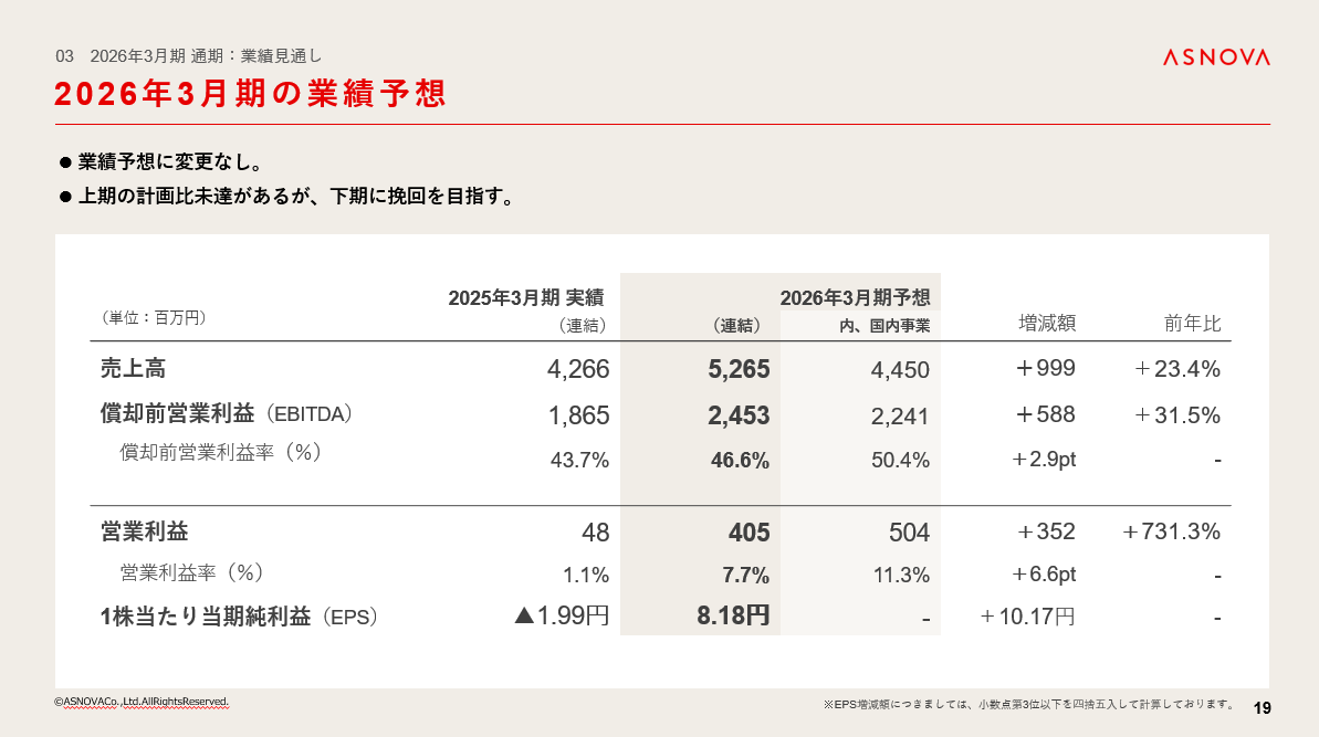 2026年3月期の業績予想