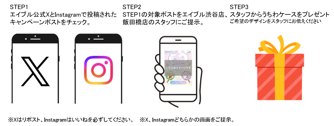 ぜひ、うちわケースをお受け取りいただいた方は、うちわケースとともに一緒に写真を撮り、「#エイブルと推し活」とハッシュタグをつけてSNSにご投稿ください。