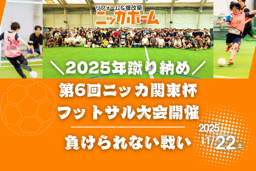 住宅リフォーム事業を手掛ける ニッカホーム株式会社(本社:愛知県名古屋市緑区篭⼭、代表取締役社長:西田裕久、以下 ニッカホーム)関東支社は、社内レクリエーションとして実施している「ニッカホーム関東杯(フットサル大会)」を、2025年11月22日(土)に開催します。