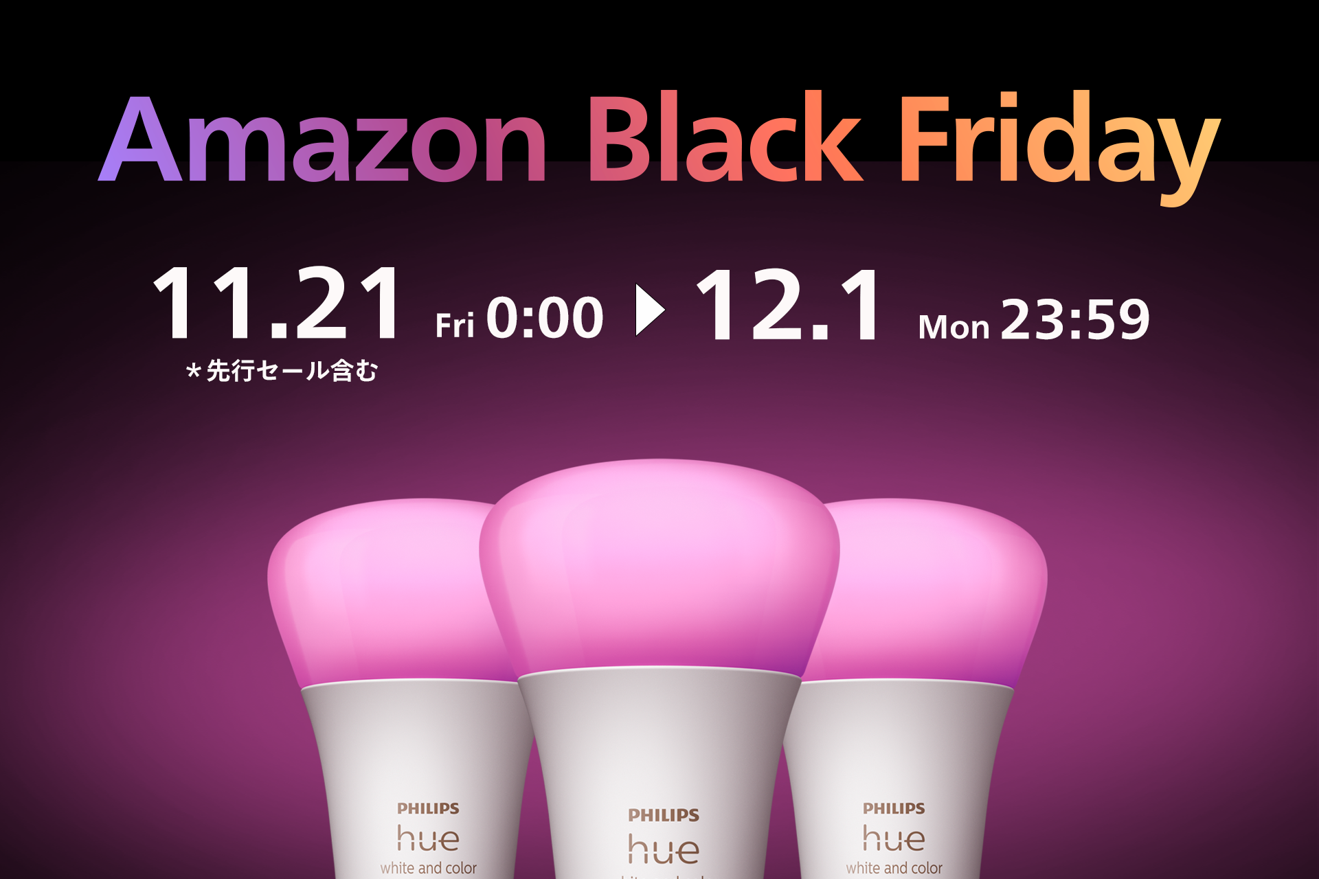 シグニファイジャパン合同会社 (本社:東京都品川区、職務執行者 社長:大塚 圭太郎、以下シグニファイ)は、Amazon で 11月21日(金)0 時から 12月1日(月)23:59 にかけて開催される「Amazon ブラックフライデー」(先行セール期間含む)における注目商品を発表いたしました。