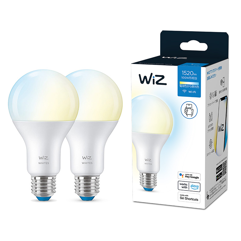 WiZ 昼光色・電球色 E26電球(100W相当)2個セット