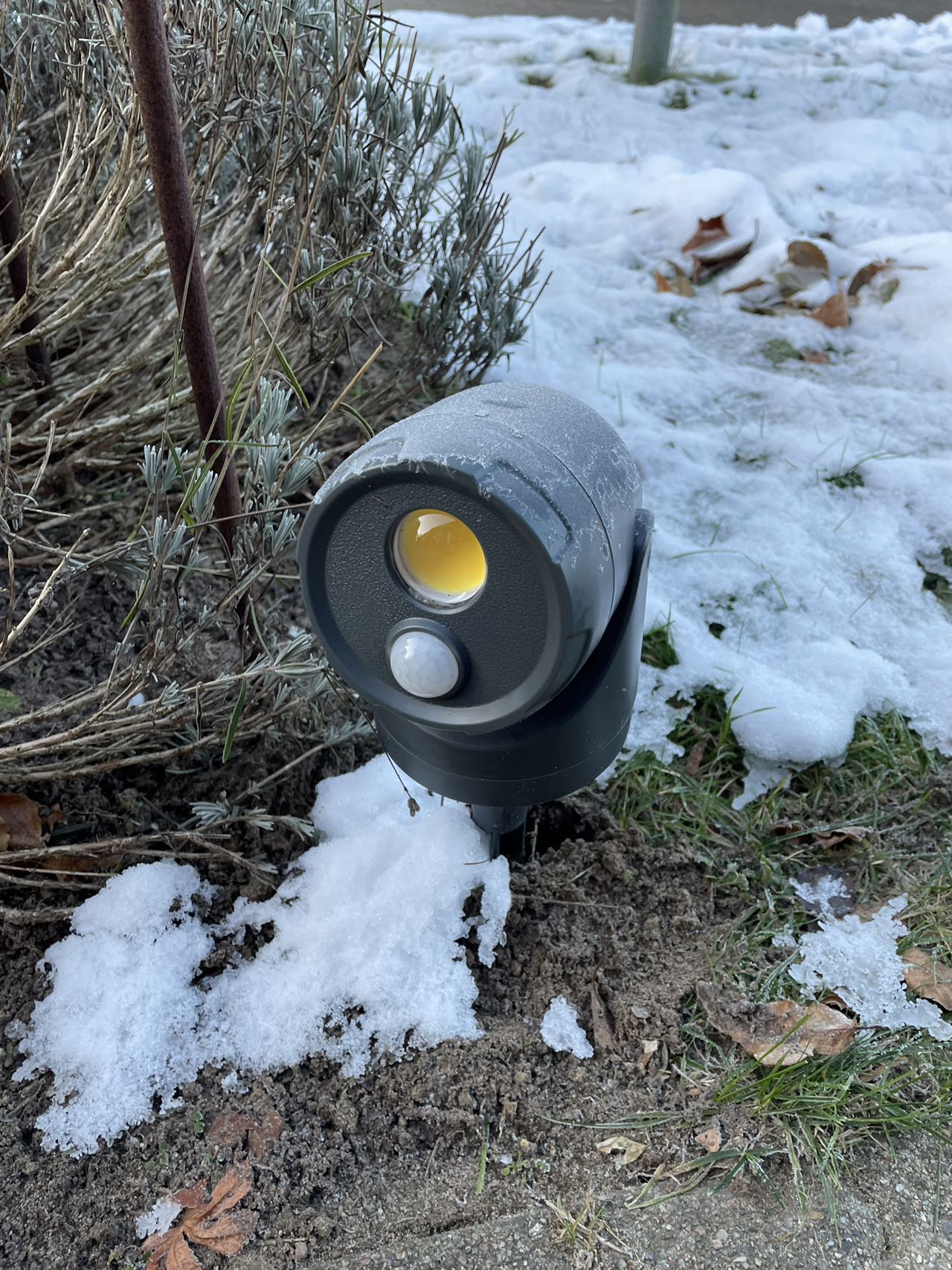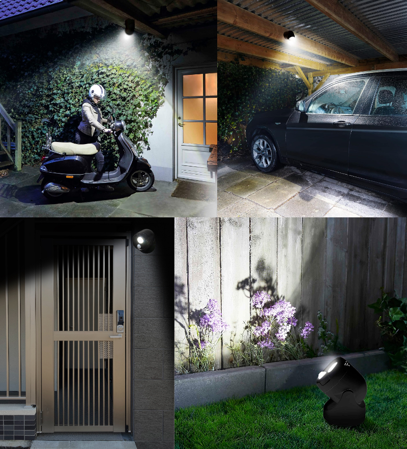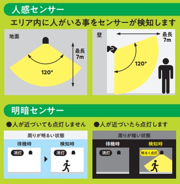人や動物などの動きを検知すると協力スポットライトが自動点灯し、夜間の防犯につながります。