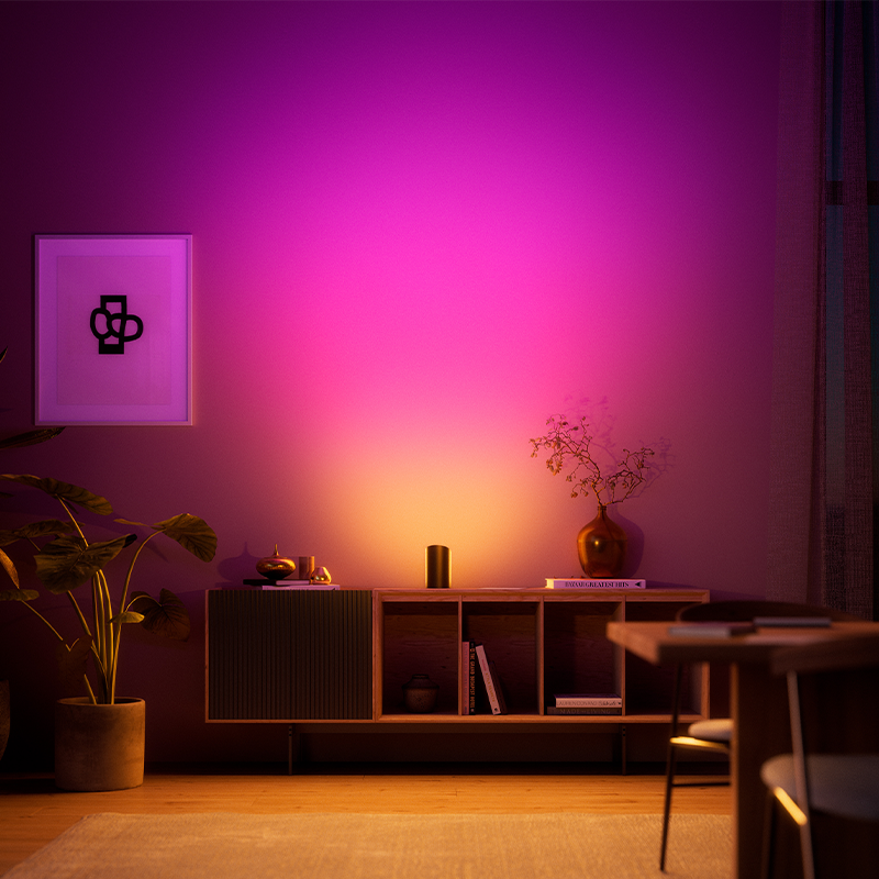 ColorCast™(カラーキャスト)テクノロジーにより、照明が壁から離れていても色が薄まることがなく、鮮やかな色彩を保ちます。また、1台で複数の色を滑らかなグラデーションで表現します。