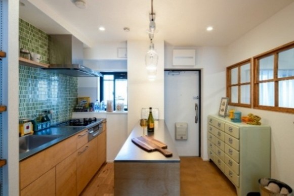今回は明るくポップな空間づくりがテーマでしたので、玄関を開けた瞬間に明るさを感じられるようにキッチンとの間の壁をなくして一つの空間にしました。洋室との間にも室内窓を設ける事でキッチンから洋室までが一体になった様な空間づくりが実現致しました。ダルトンさんとのコラボレーションも回を重ねるごとに面白みも増し、アイデアを出し合いながら、楽しい空間づくりが出来たと思います。特に玄関の靴箱は、引き出しに靴を収納するスタイル。これまでのマイリノには無かった発想でした。随所に飾るスペースもたくさん設けましたので、雑貨集めの好きな方などに愉しく暮らして頂けたら嬉しく思います。