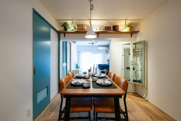<⾷事の場であると同時に、⾃分らしさを表現できる空間に仕上げたダイニング>