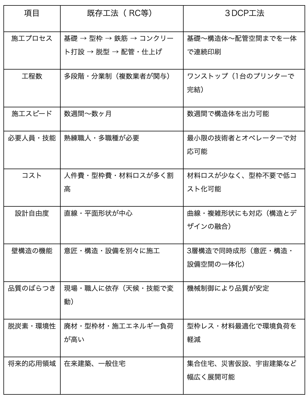 ■技術の特徴と成果(既存3DCPと比較した新規性)