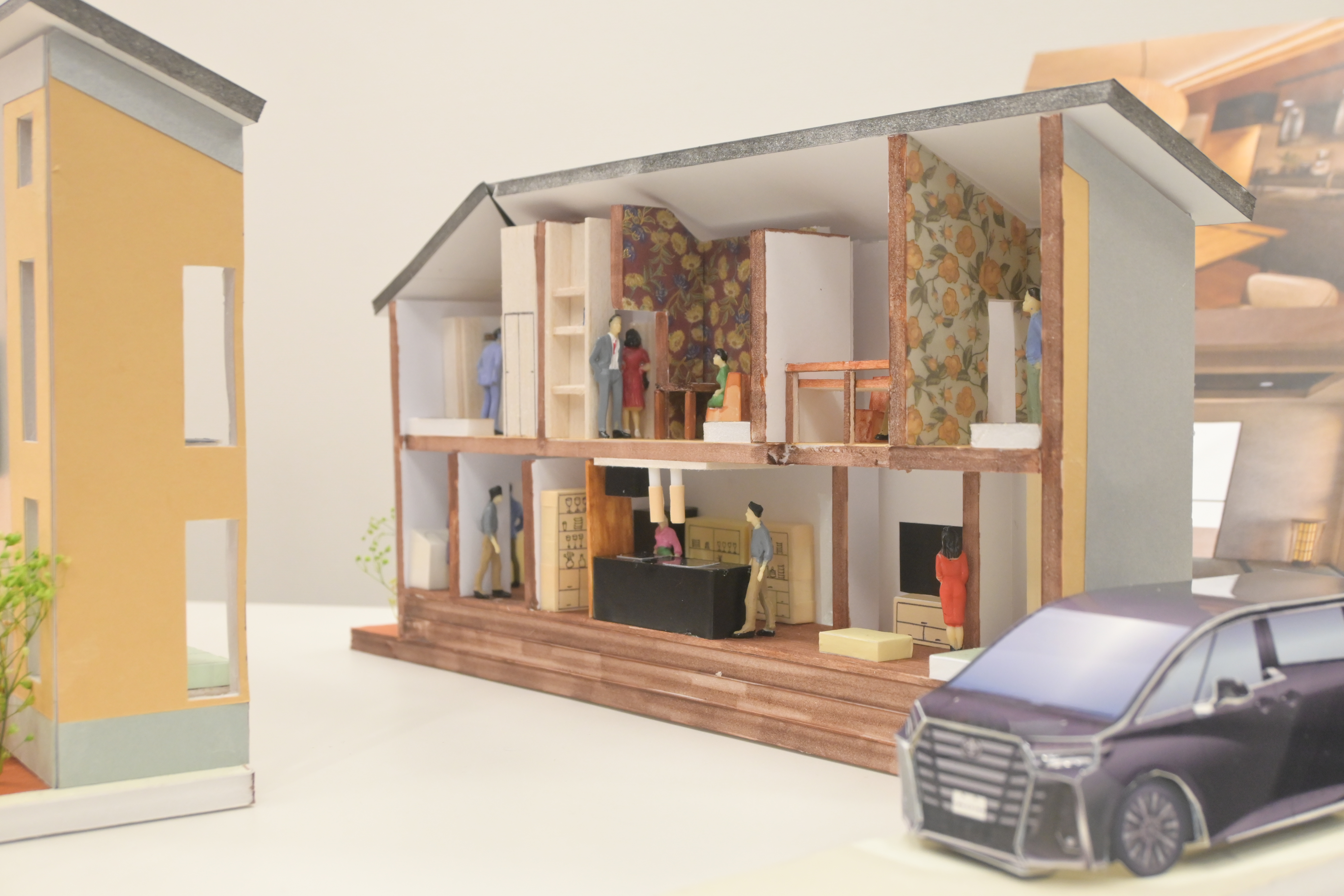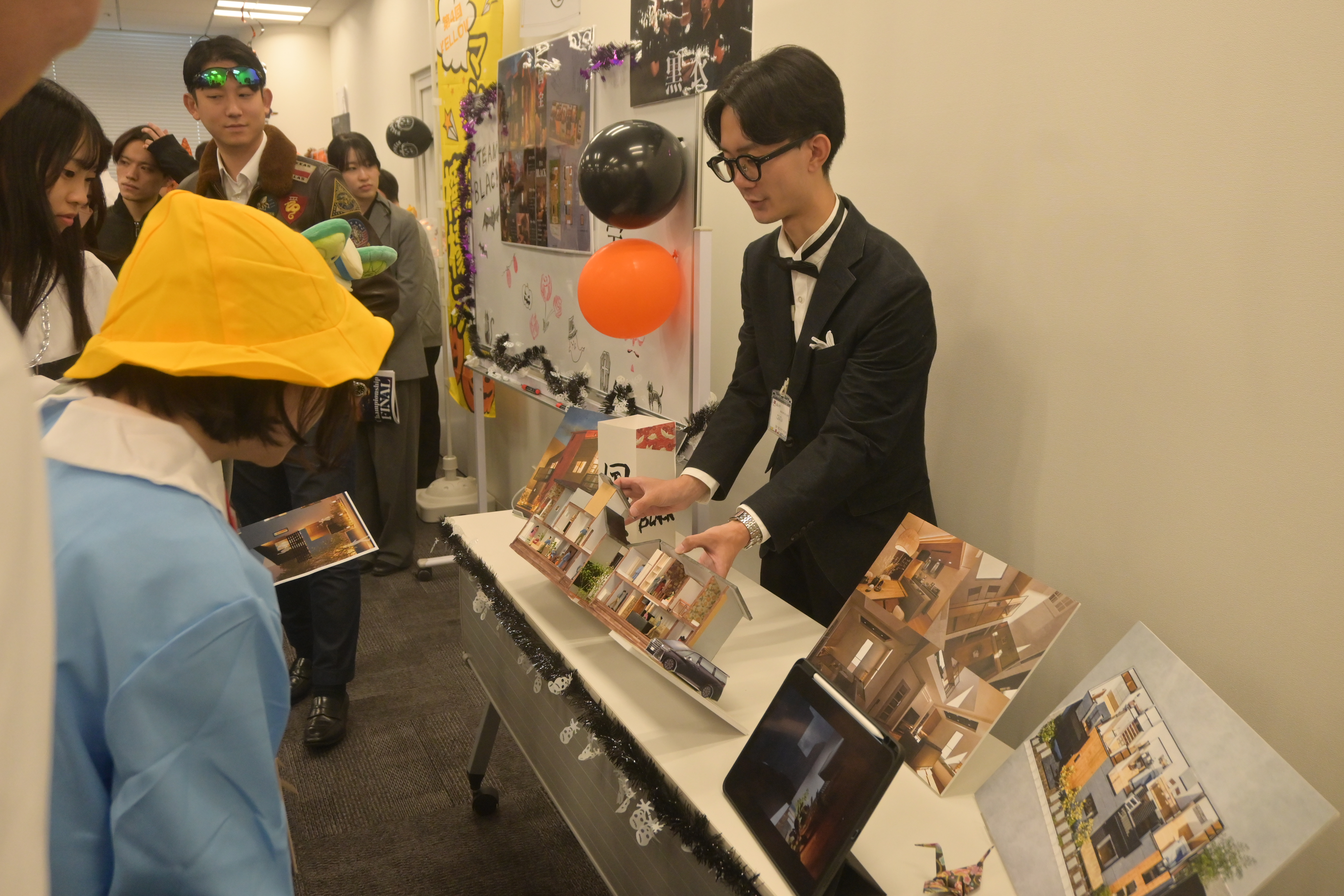 GRAND FINALは各予選を勝ち抜いた5チームによって行われ、企画をブラッシュアップして臨んだ学生たちの「絶対に優勝する」という高い意欲に、会場は熱気に包まれました。プレゼンテーションでは、その企画力はもちろん、暮らしの雰囲気まで感じるこだわりの模型に社員も驚いていました。審査は①デザイン②間取り③施工実現性④プレゼンテーション⑤模型の5つの項目から行われ、オープンハウス・ディベロップメントの設計士約100名による厳正な投票の結果、チーム「黒衣」の企画「国宝」がGRAND FINALの優勝を勝ち取り、優勝賞品として報奨金50万円が贈呈されました。今後、この優勝作品の企画は、プロの設計士との詳細調整を経て、実際に建築・販売されます。