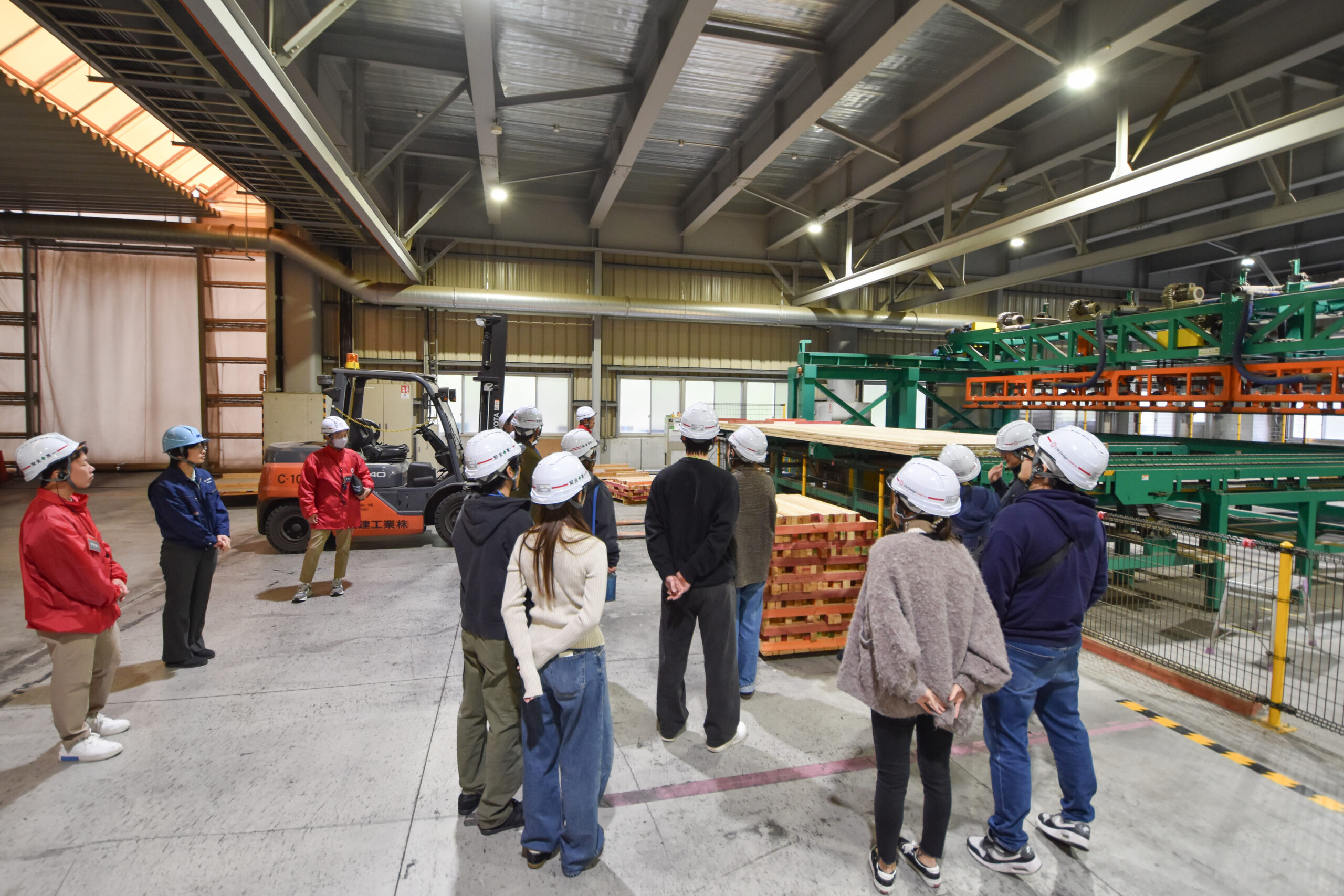 ・CLTの製造工程や品質管理体制などの解説を交えた銘建工業株式会社CLT工場見学