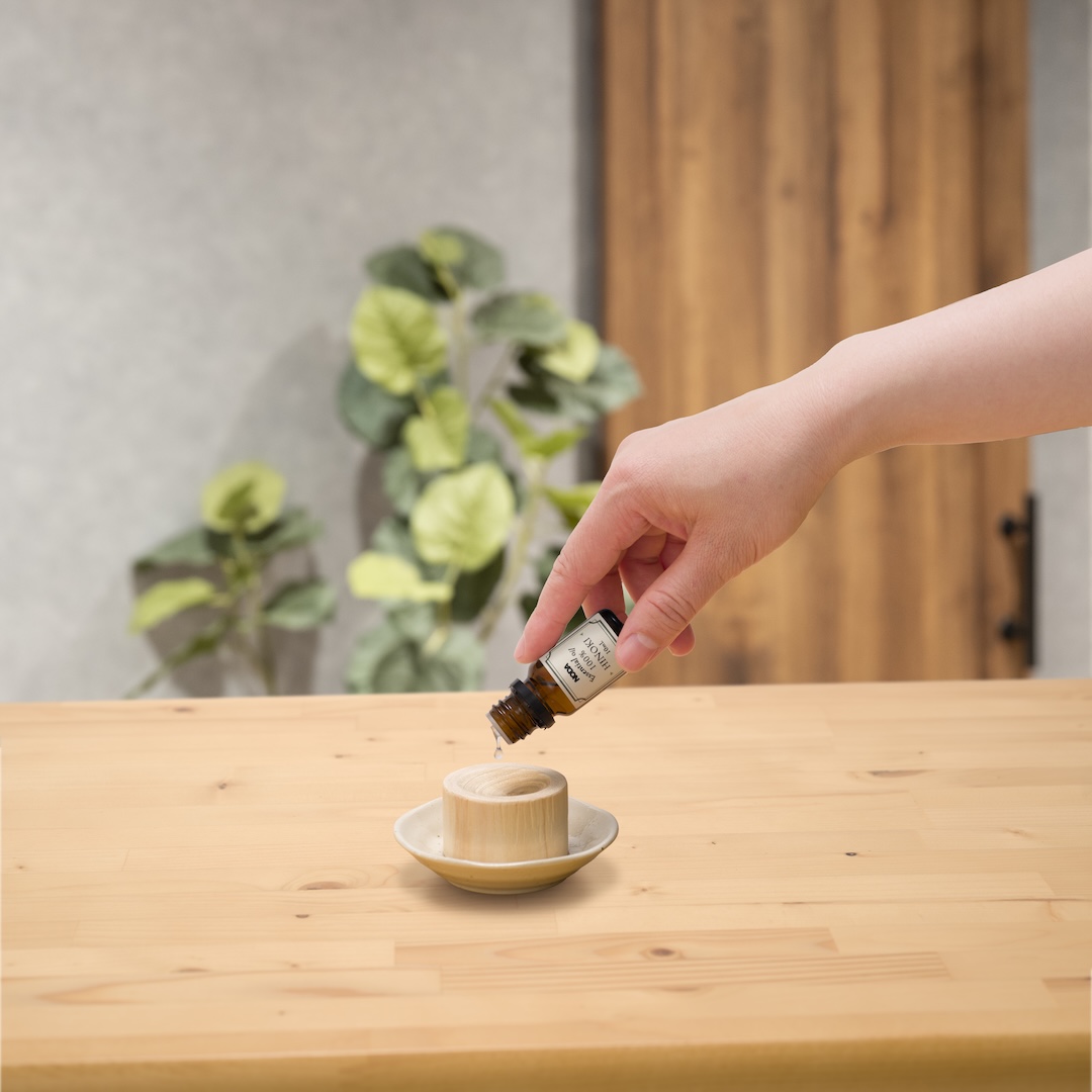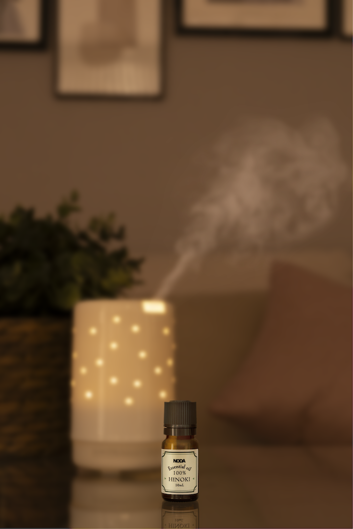 ノダの「ヒノキエッセンシャルオイル」は、木部抽出ながら枝葉由来のような爽やかさをも感じさせる、従来のヒノキ精油とは異なるまったく新しい香りが特徴です。