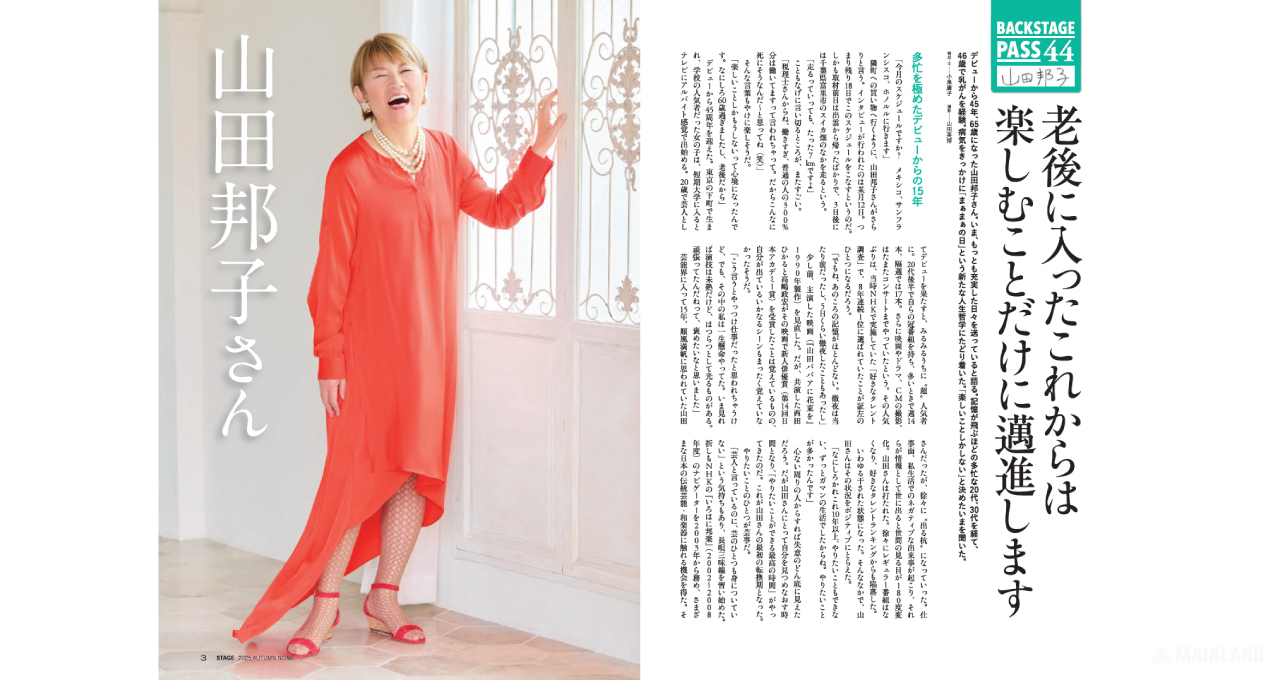 秋の夜長に読みたい、山田邦子さん登場の新巻頭企画「バックステージパス」ほか、多彩な情報を掲載