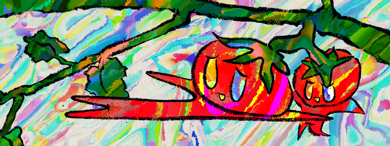 応募作品全29作品の中から、アーティストのTokoma Tomato様が描いた「斑入り唐なすび」という作品が優勝作品に選出されました。本作は、江戸時代の狩野探幽の「唐なすび」をオマージュし、現代的な視点でトマトを描いたデジタルアート作品です。