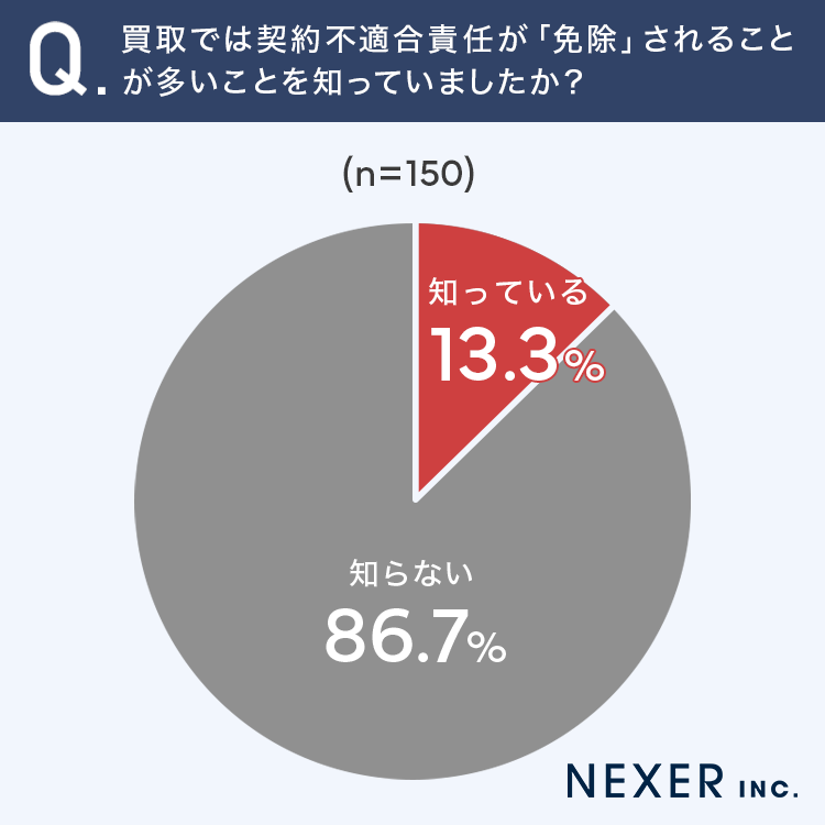 次に、不動産の買取において契約不適合責任が免除されることが多いことを知っているか調査しました。